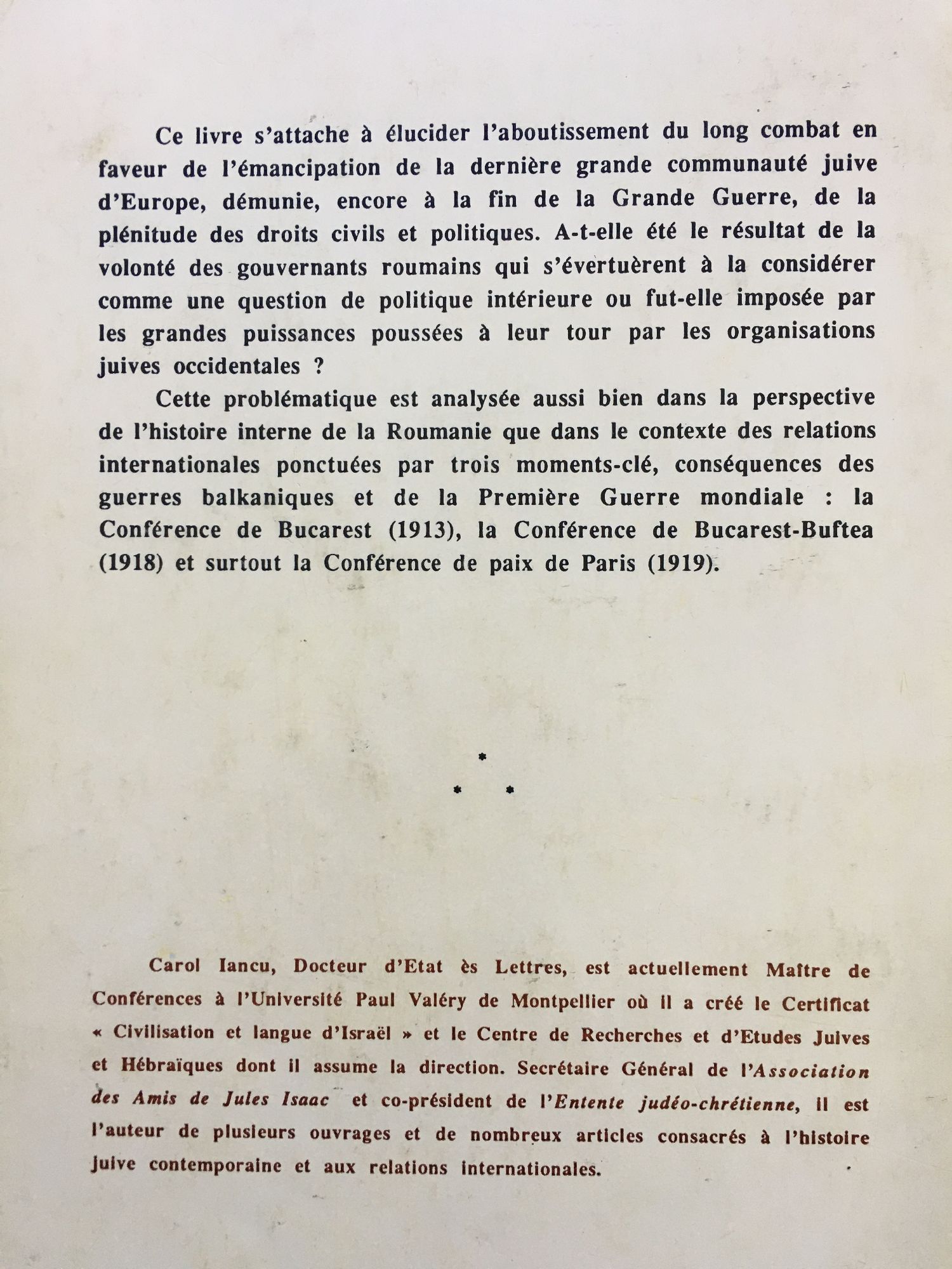 L'emancipation des juifs de Roumanie (1913 - 1919)