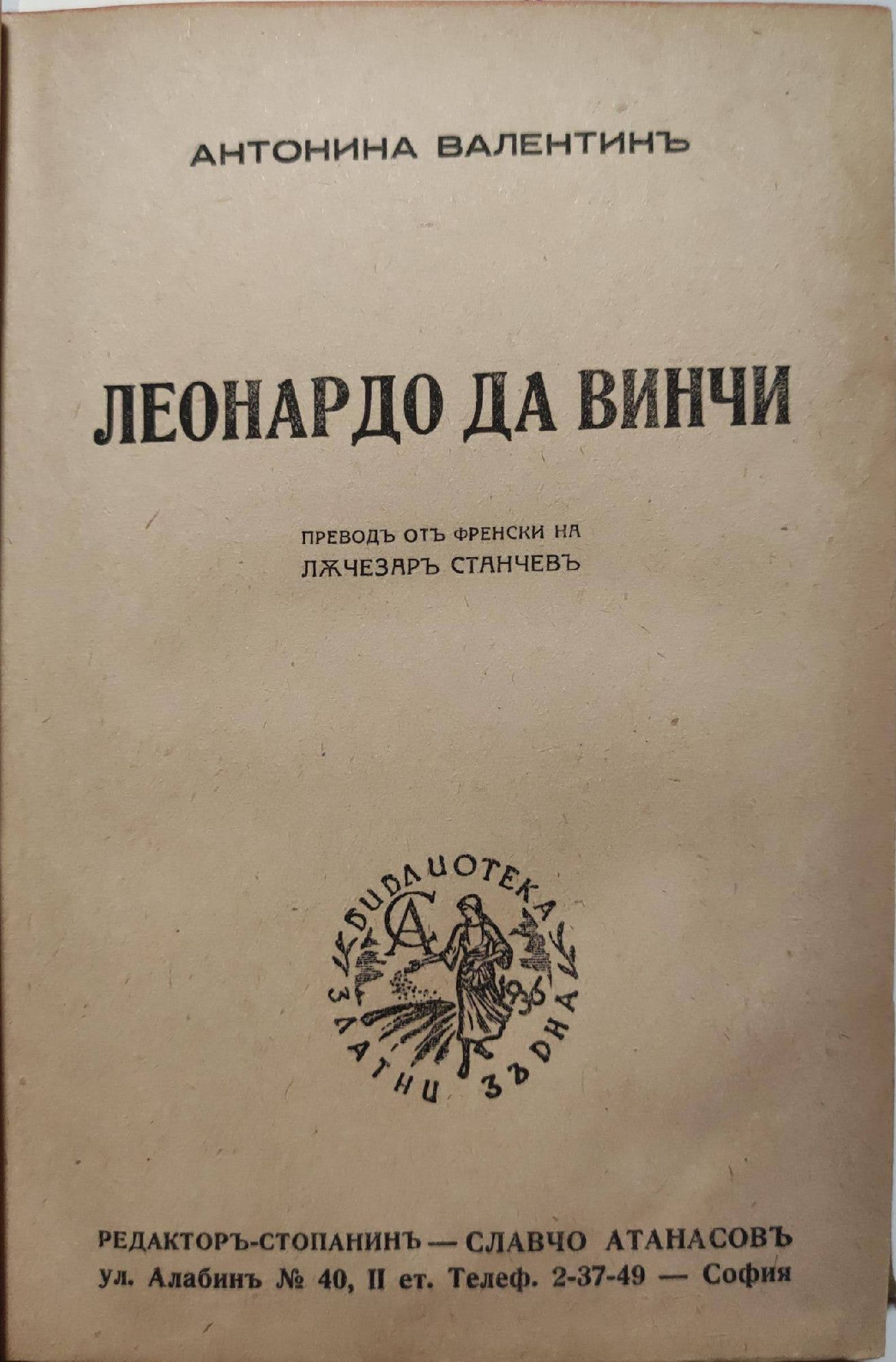 10,23 € / 20,01 лв.Добро състояние на книжното тяло. Запазена, в твърда подвързия, не е запазена меката корица. Следи от намокряне по началните листове, по-леки такива по последните.