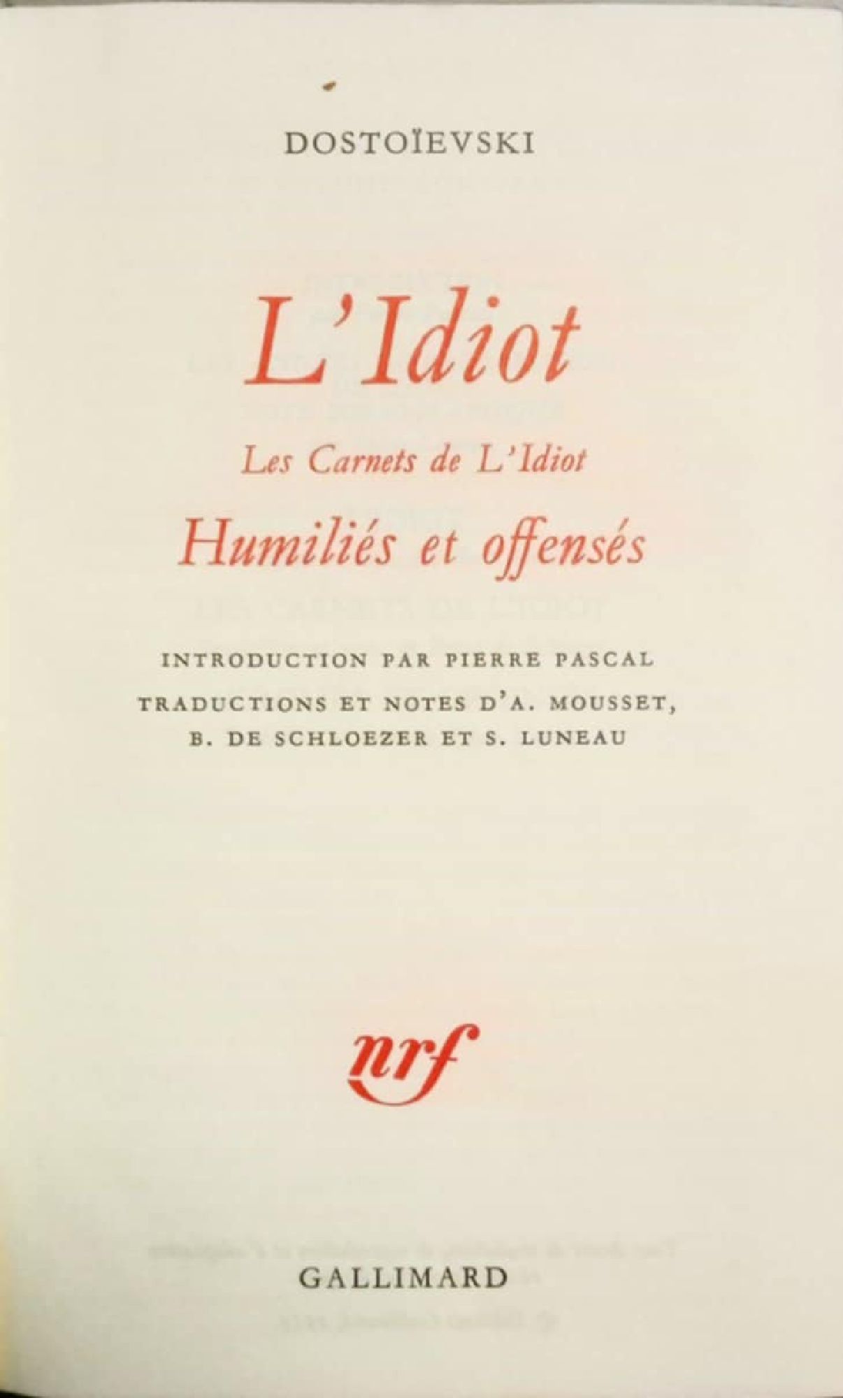 L'Idiot. Les Carnets de L'Idiot. Humilies et offenses / Идиот. Тетрадките към "Идиот". Унизените и оскърбените
