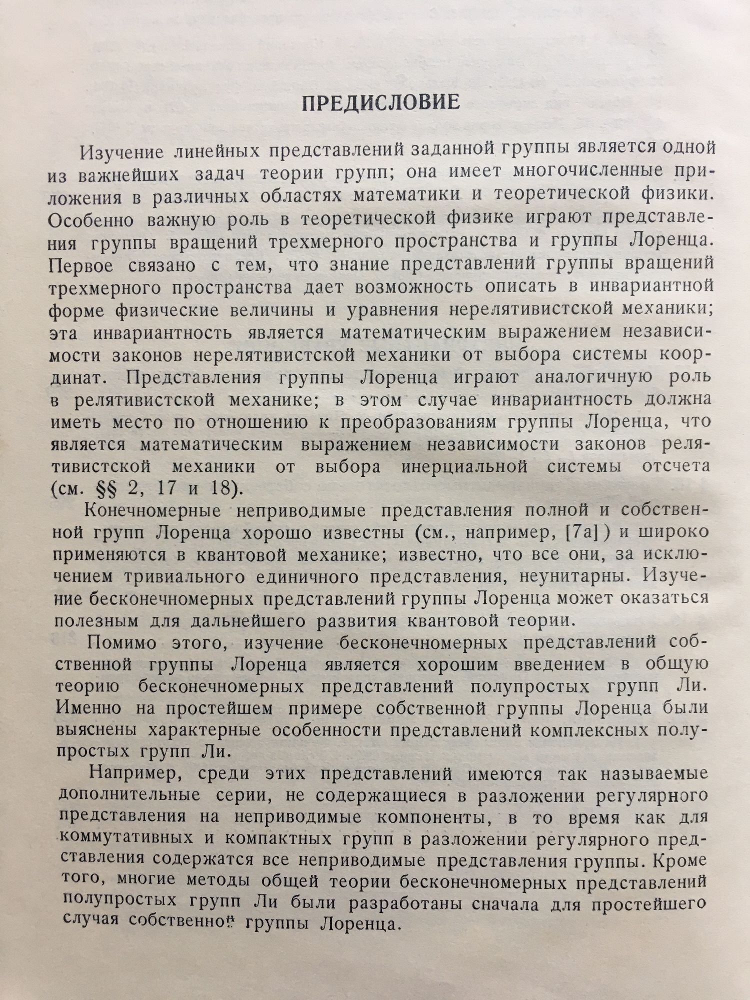 Линейные представления группы Лоренца