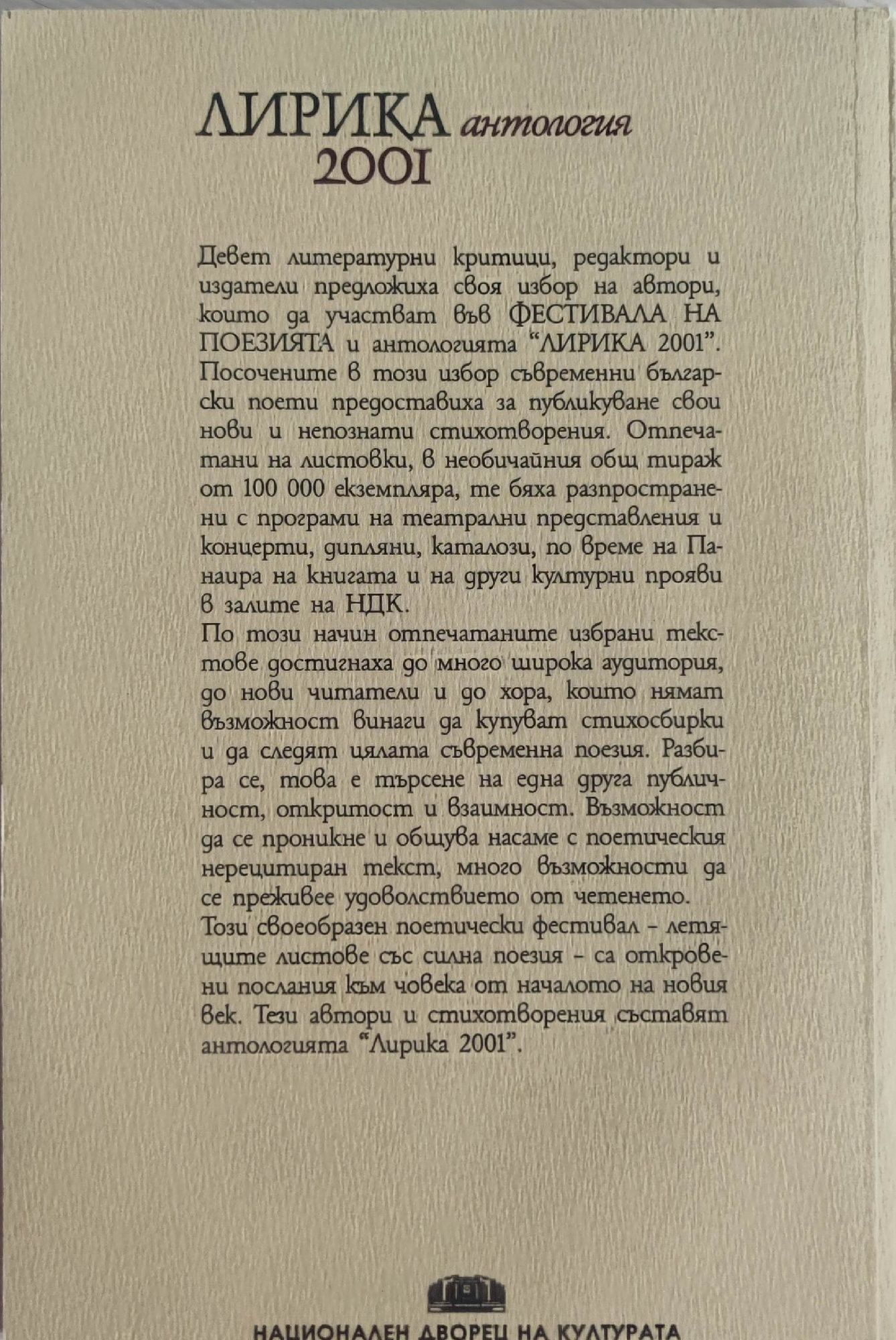 - издателство: Национален дворец на културата