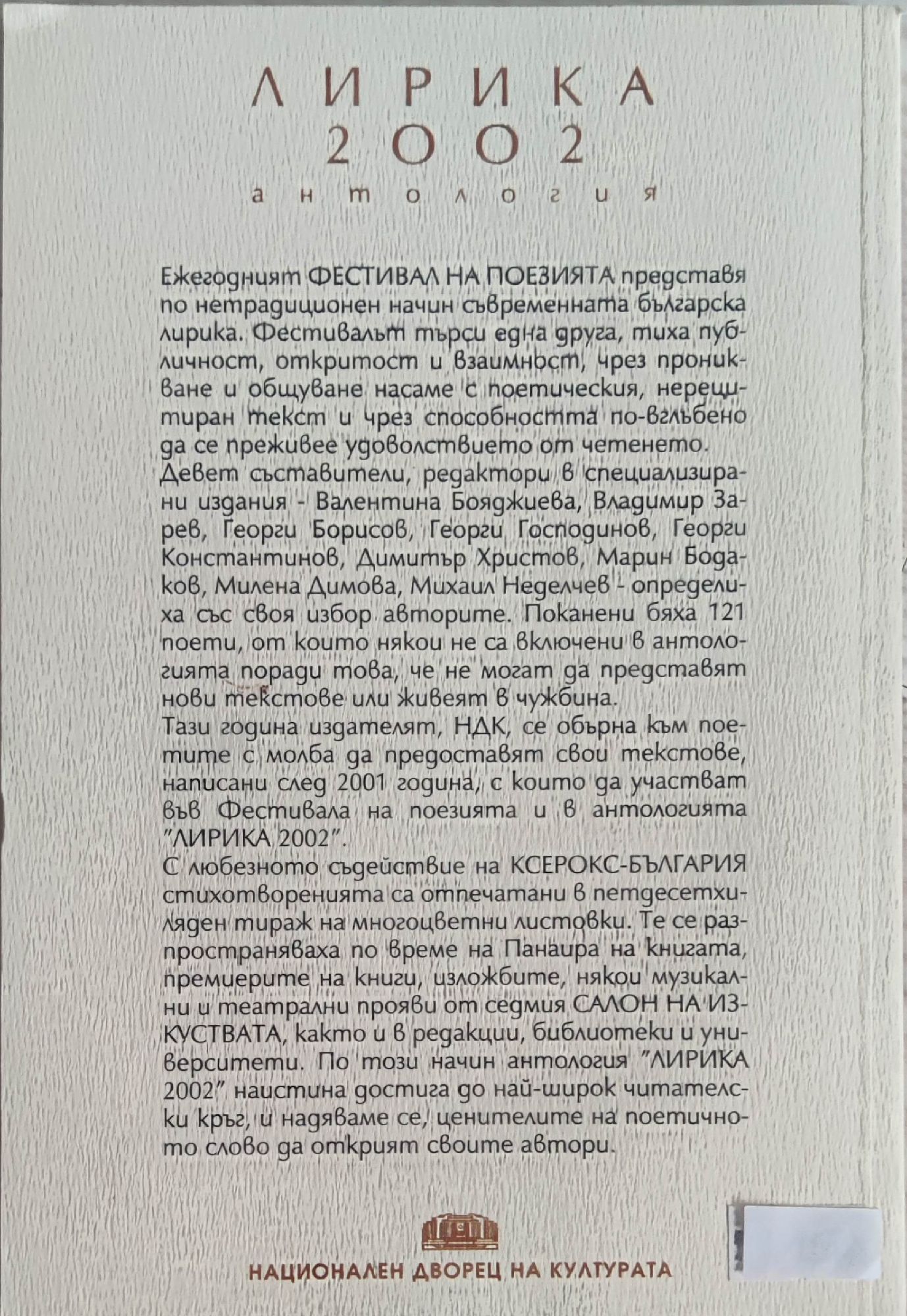 - издателство: Национален дворец на културата