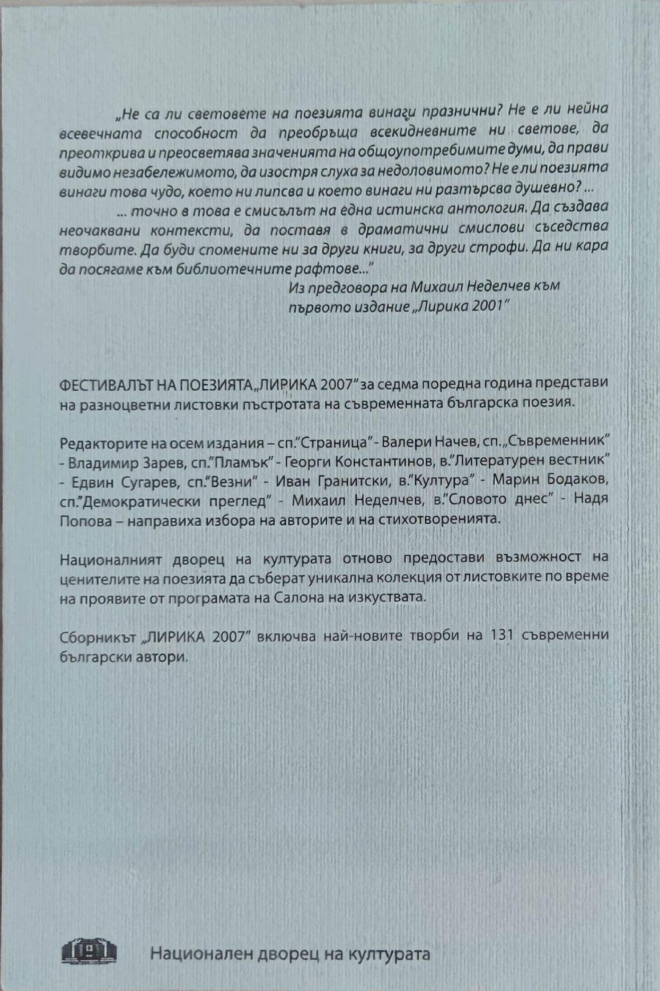- издателство: Национален дворец на културата