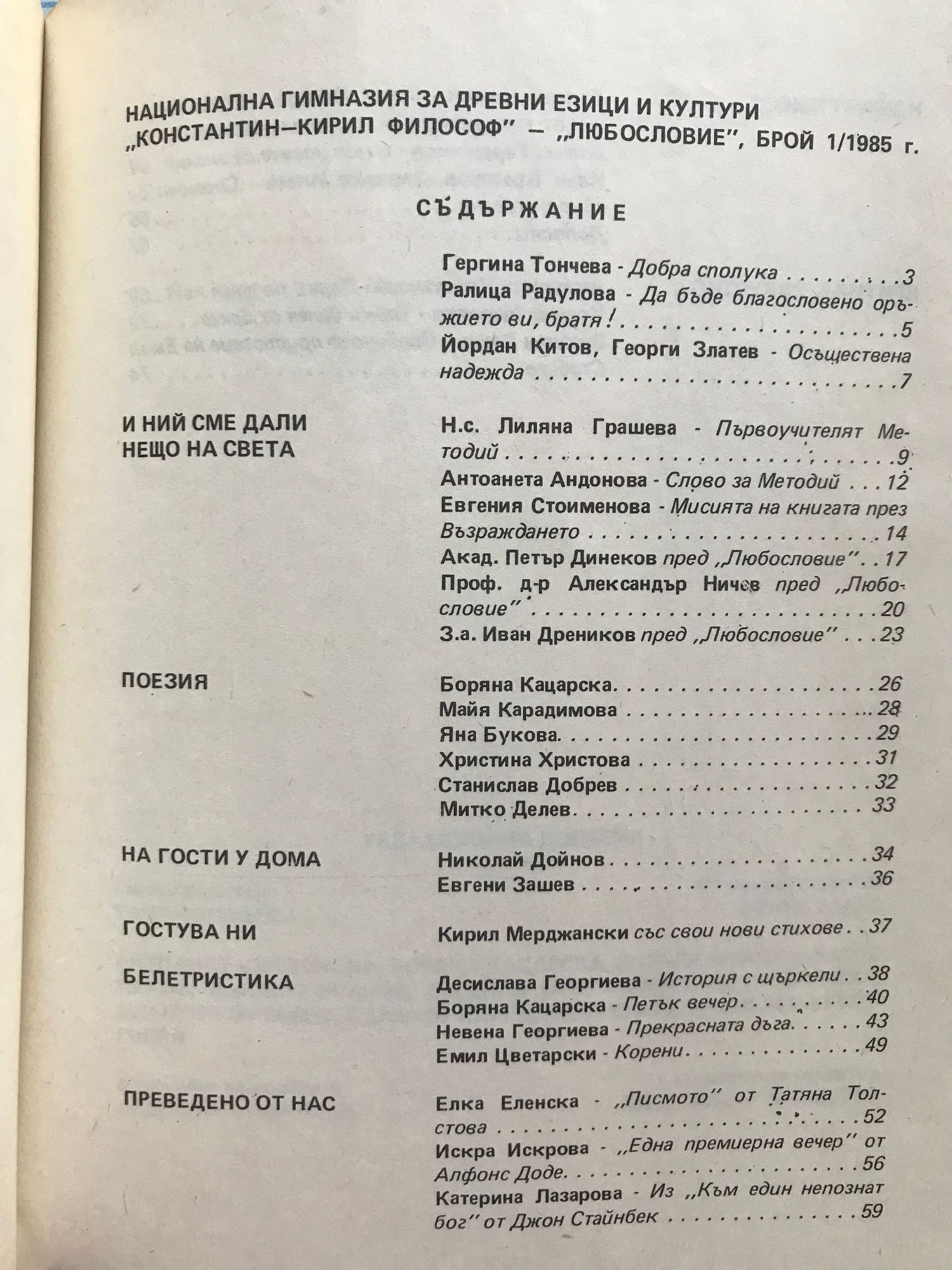 Любословие. Брой 1 / 1985 г.