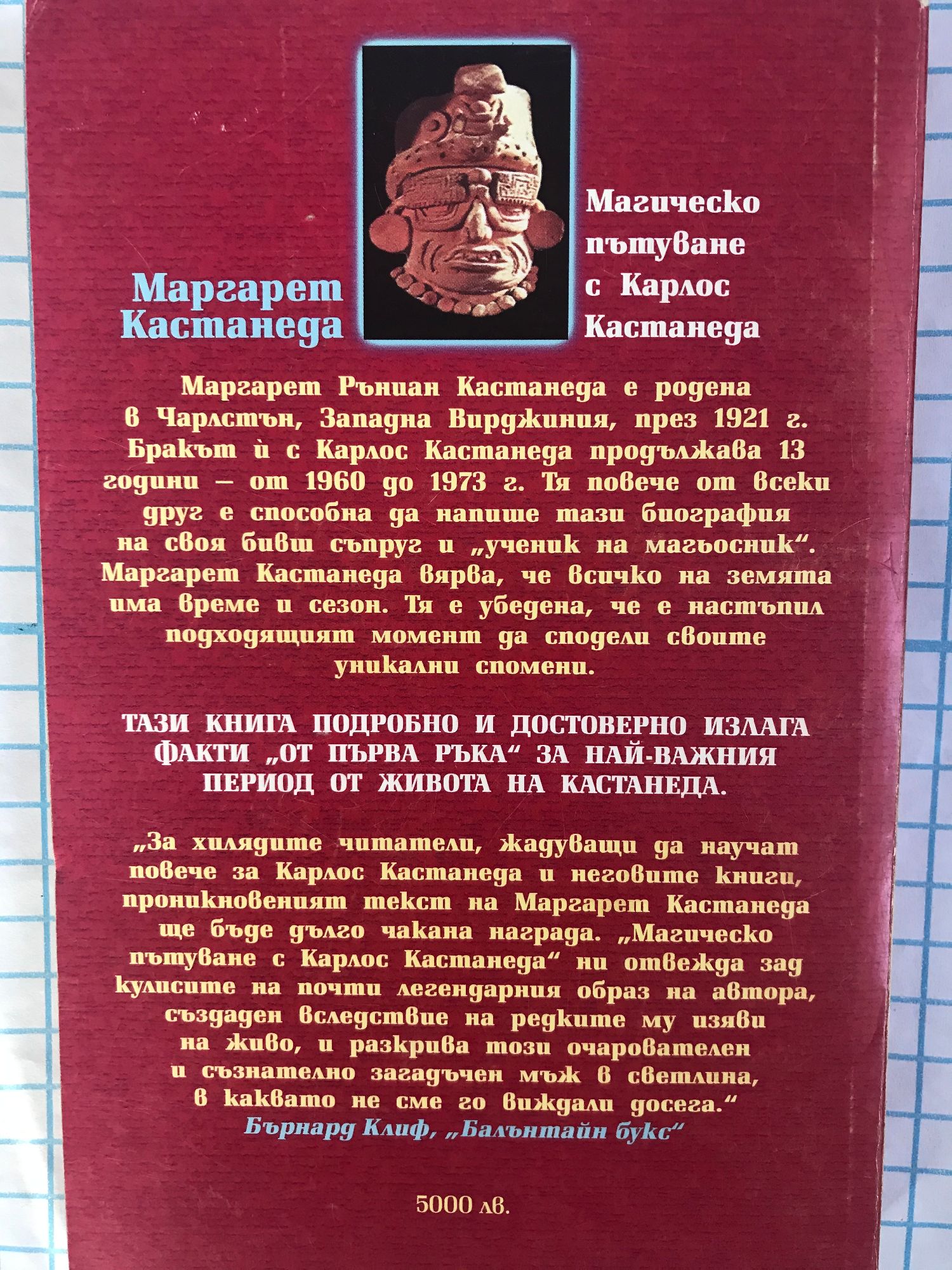 „За хилядите читатели, жадуващи да научат повече за Карлос Кастанеда и неговите книги, проникновеният текст на Маргарет Кастанеда ще бъде дълго чакана награда. „Магическо пътуване с Карлос Кастанеда" ни отвежда зад кулисите на почти легендарния образ на автора, създаден вследствие на редките му изяви на живо, и разкрива този очарователен и съзнателно загадъчен мъж в светлина, в каквато не сме го виждали досега."