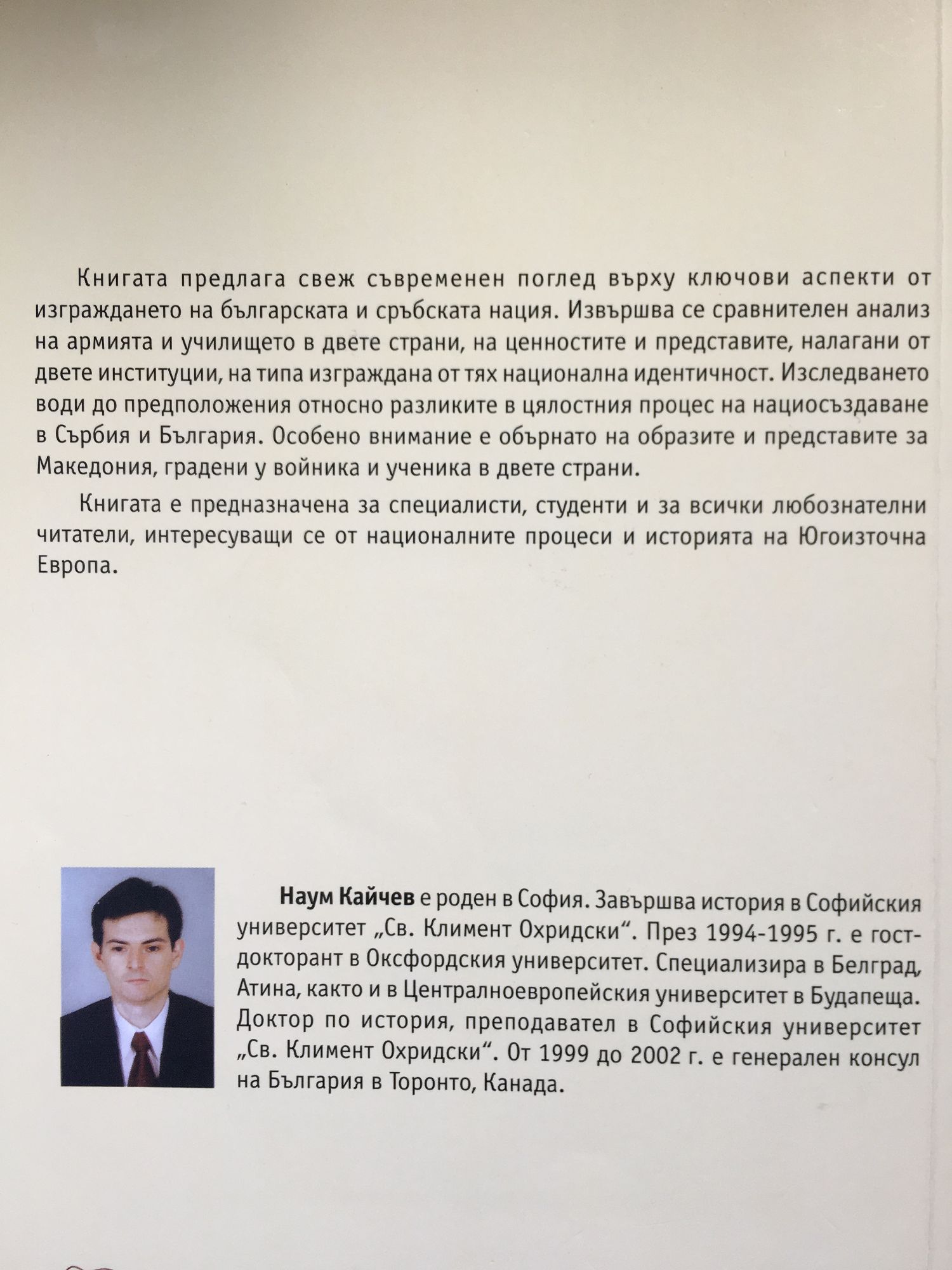 Книгата предлага свеж съвременен поглед върху ключови аспекти от изграждането на българската и сръбската нация. Извършва се сравнителен анализ на армията и училището в двете страни, на ценностите и представите, налагани от двете институции, на типа изграждана от тях национална идентичност. Изследването води до предположения относно разликите в цялостния процес на нациосъздаване в Сърбия и България. Особено внимание е обърнато на образите и представите за Македония,градени у войника и ученика в двете страни. Книгата е предназначена за специалисти, студенти и за всички любознателни читатели, интересуващи се от националните процеси и историята на Югоизточна Европа.