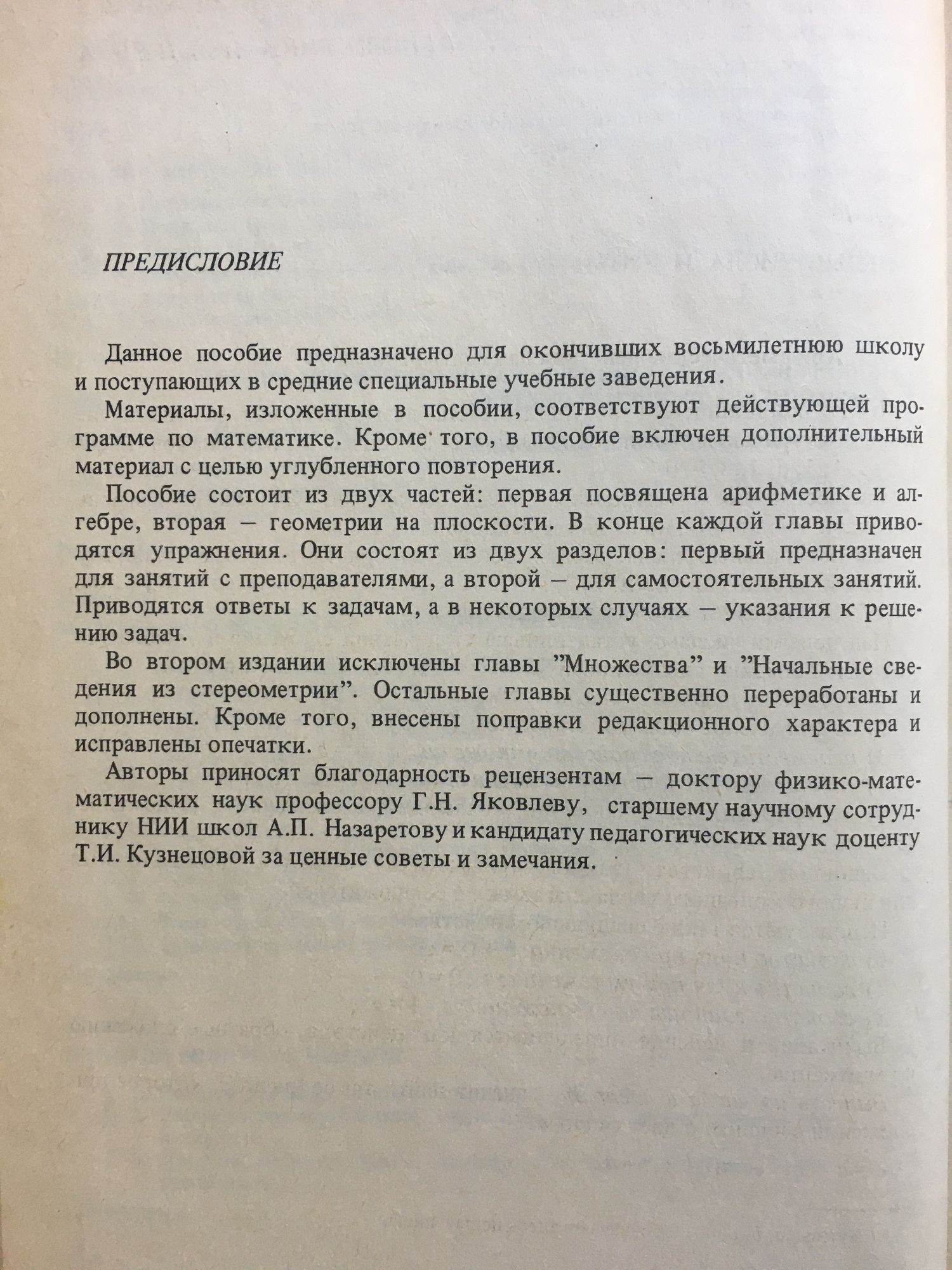 Математика для подготовительных курсов техникумов