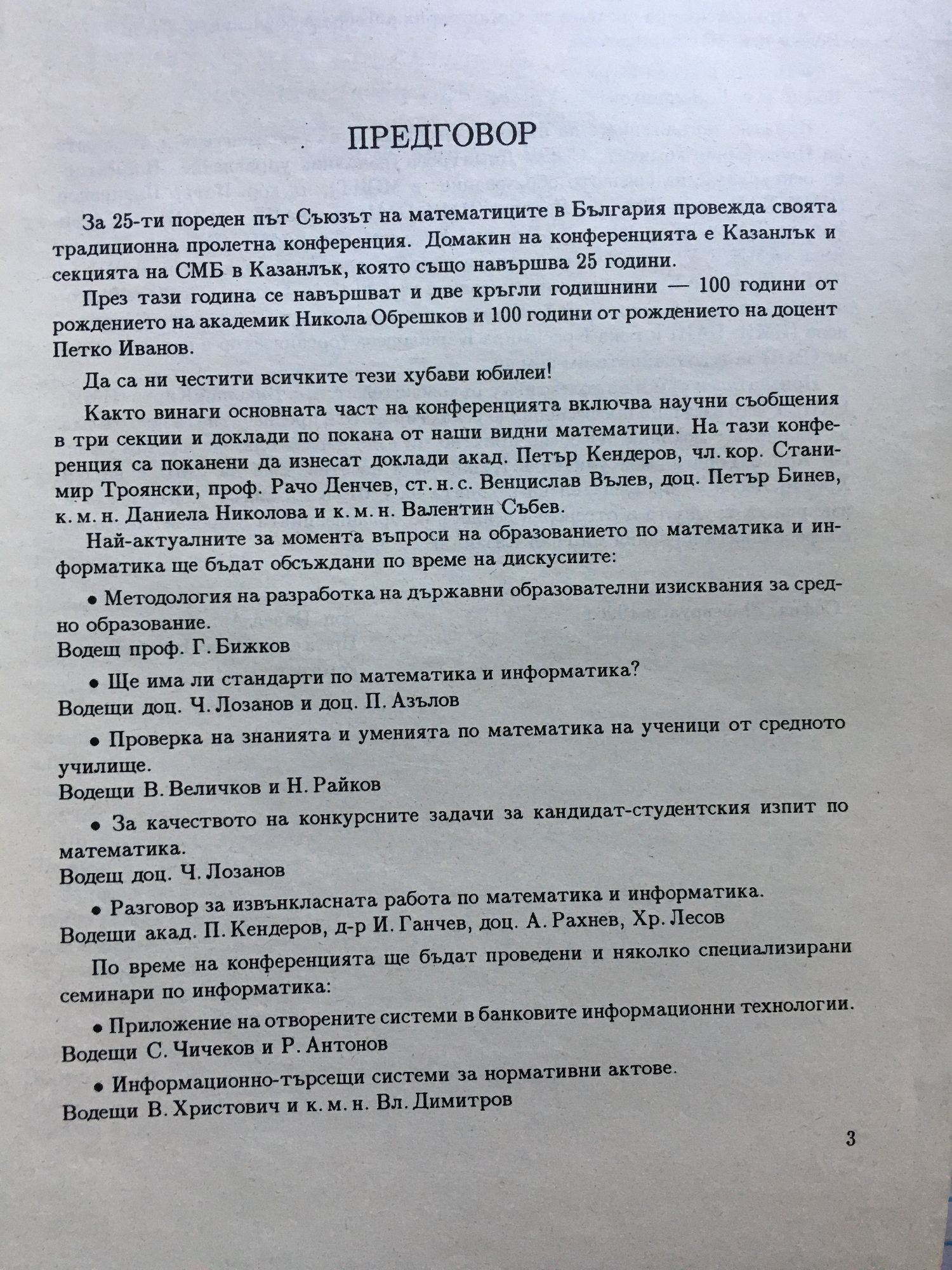 Доклади на юбилейната Двадесет и пета пролетна конференция на Съюза на математиците в България Казанлък, 6-9 април, 1996
