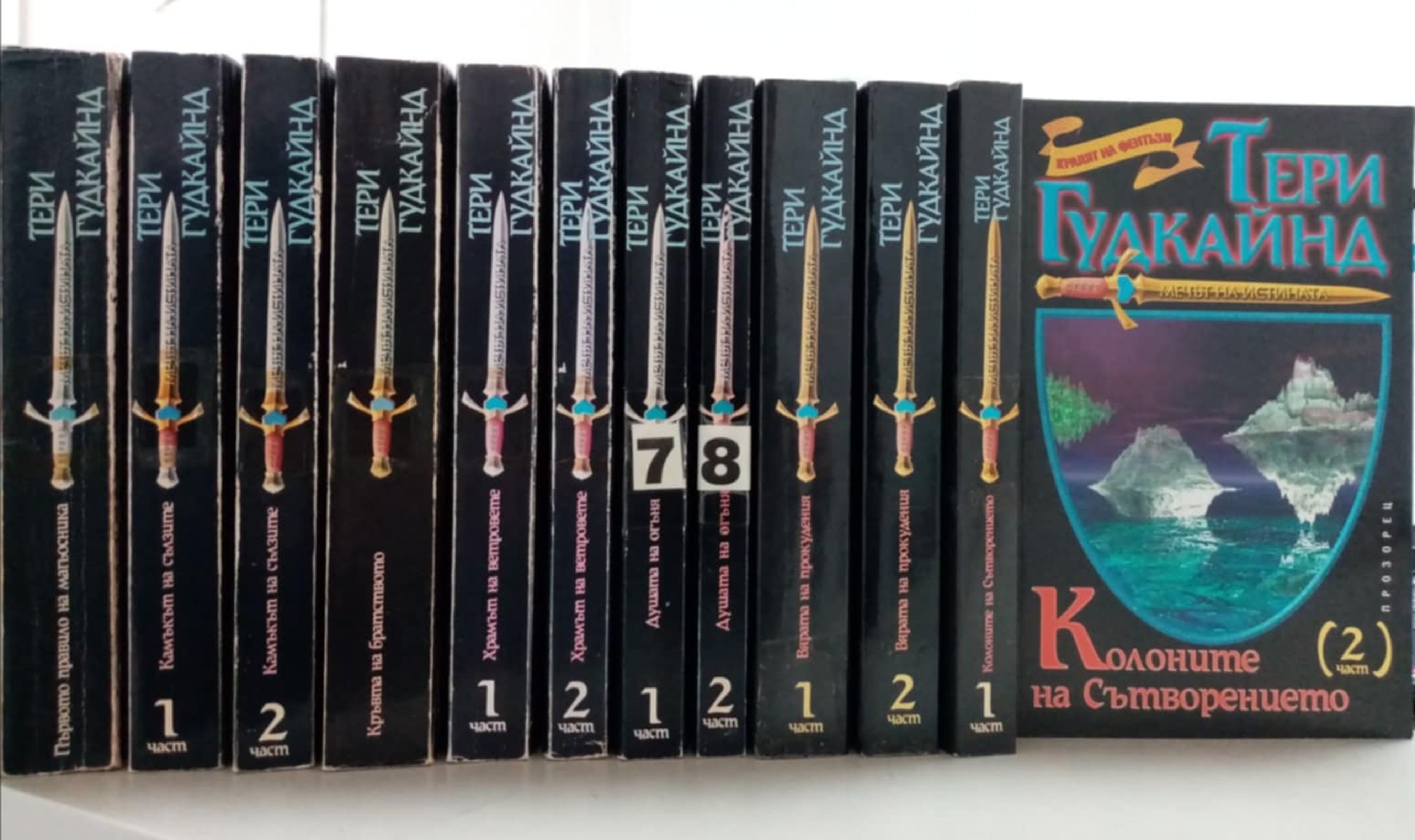 Първото правило на магьосника. Камъкът на сълзите. Кръвта на братството. Храмът на ветровете. Душата на огъня. Вярата на прокудения. Колоните на Сътворението