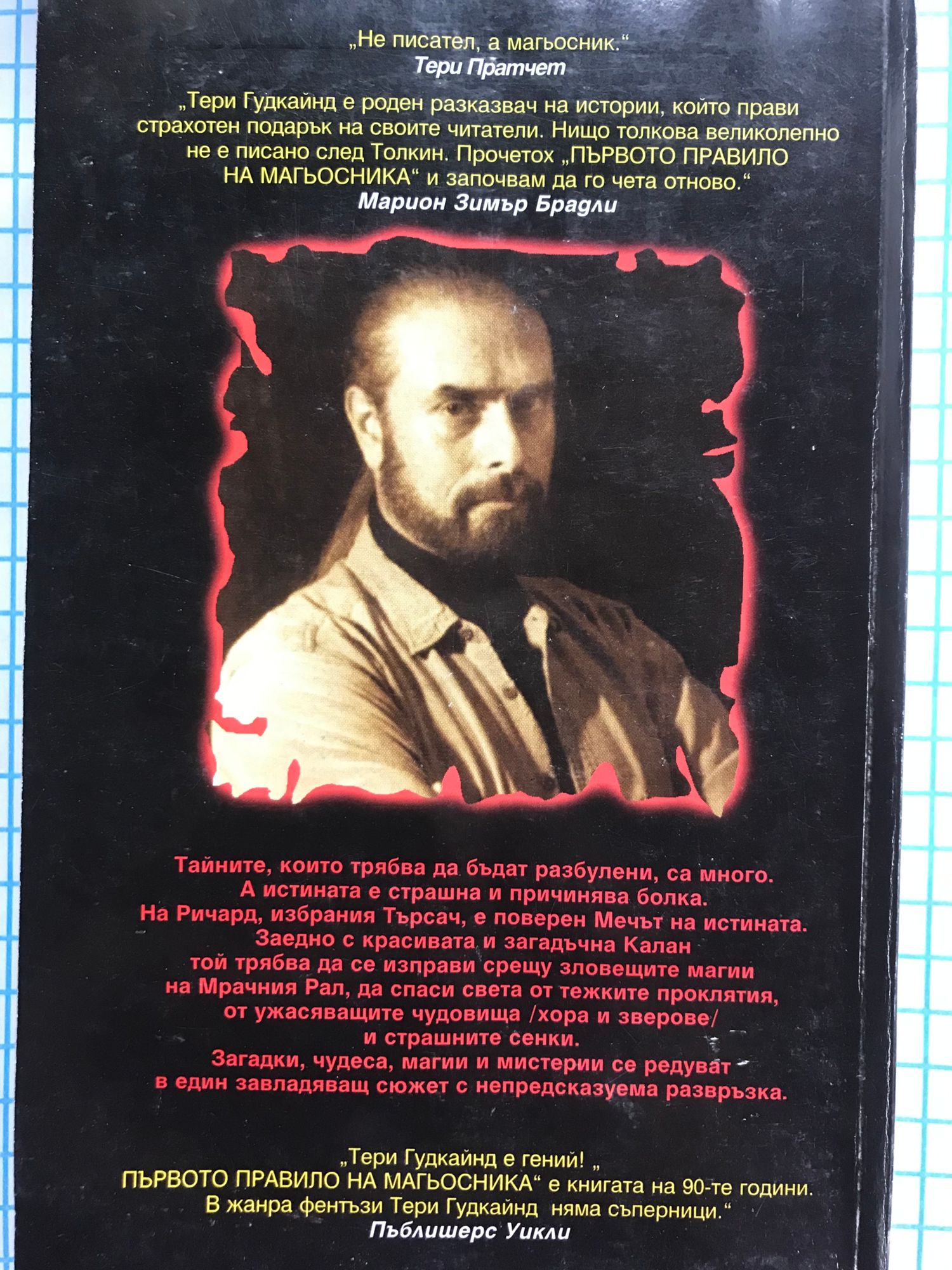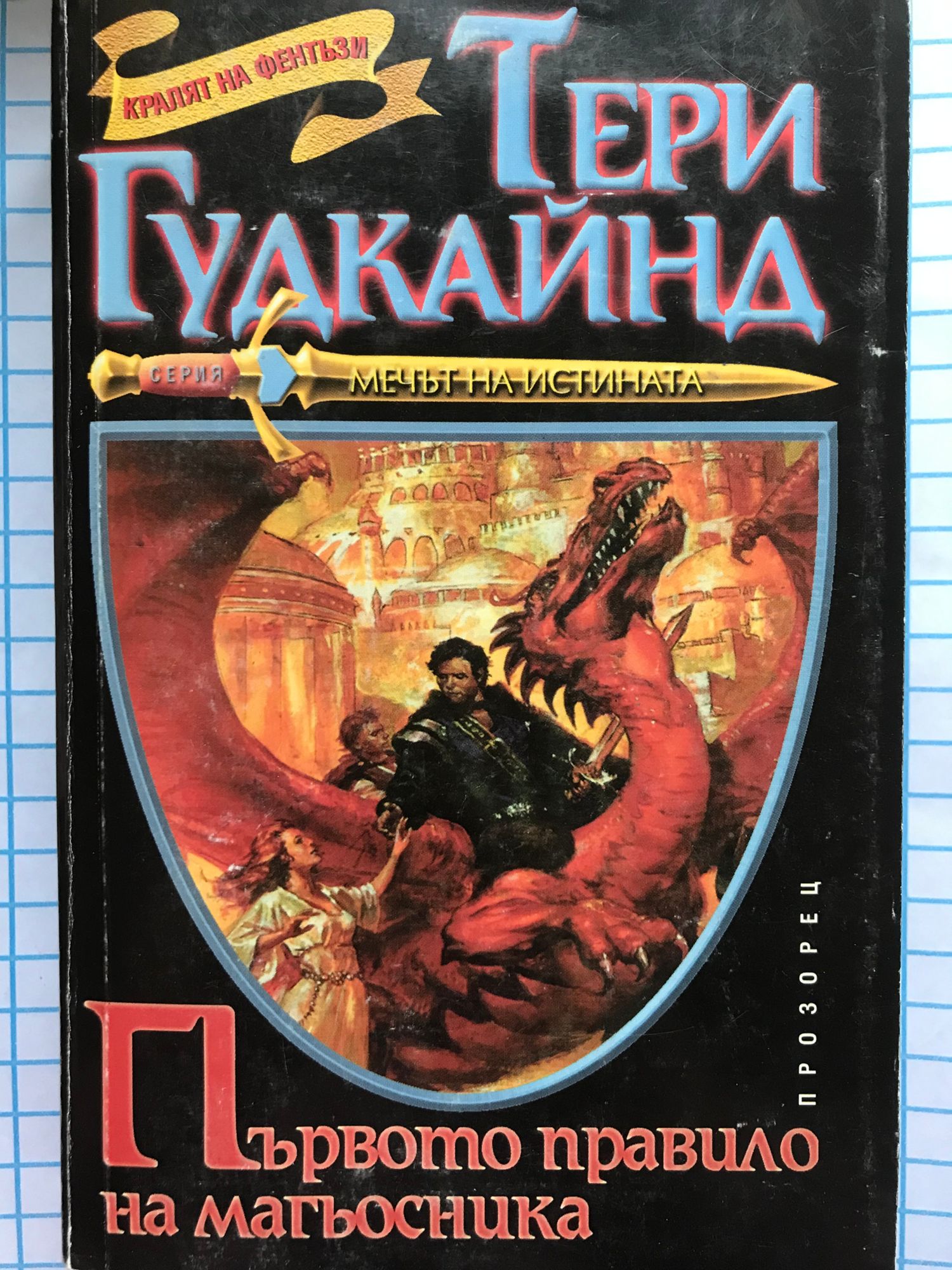 Тайните, които трябва да бъдат разбулени, са много. А истината е страшна и причинява болка. На Ричард, избрания Търсач, е поверен Мечът на истината. Заедно с красивата и загадъчна Калан той трябва да се изправи срещу зловещите магии на Мрачния Рал, да спаси света от тежките проклятия, от ужасяващите чудовища /хора и зверове/ и страшните сенки. Загадки, чудеса, магии и мистерии се редуват в един завладяващ сюжет с непредсказуема развръзка.
