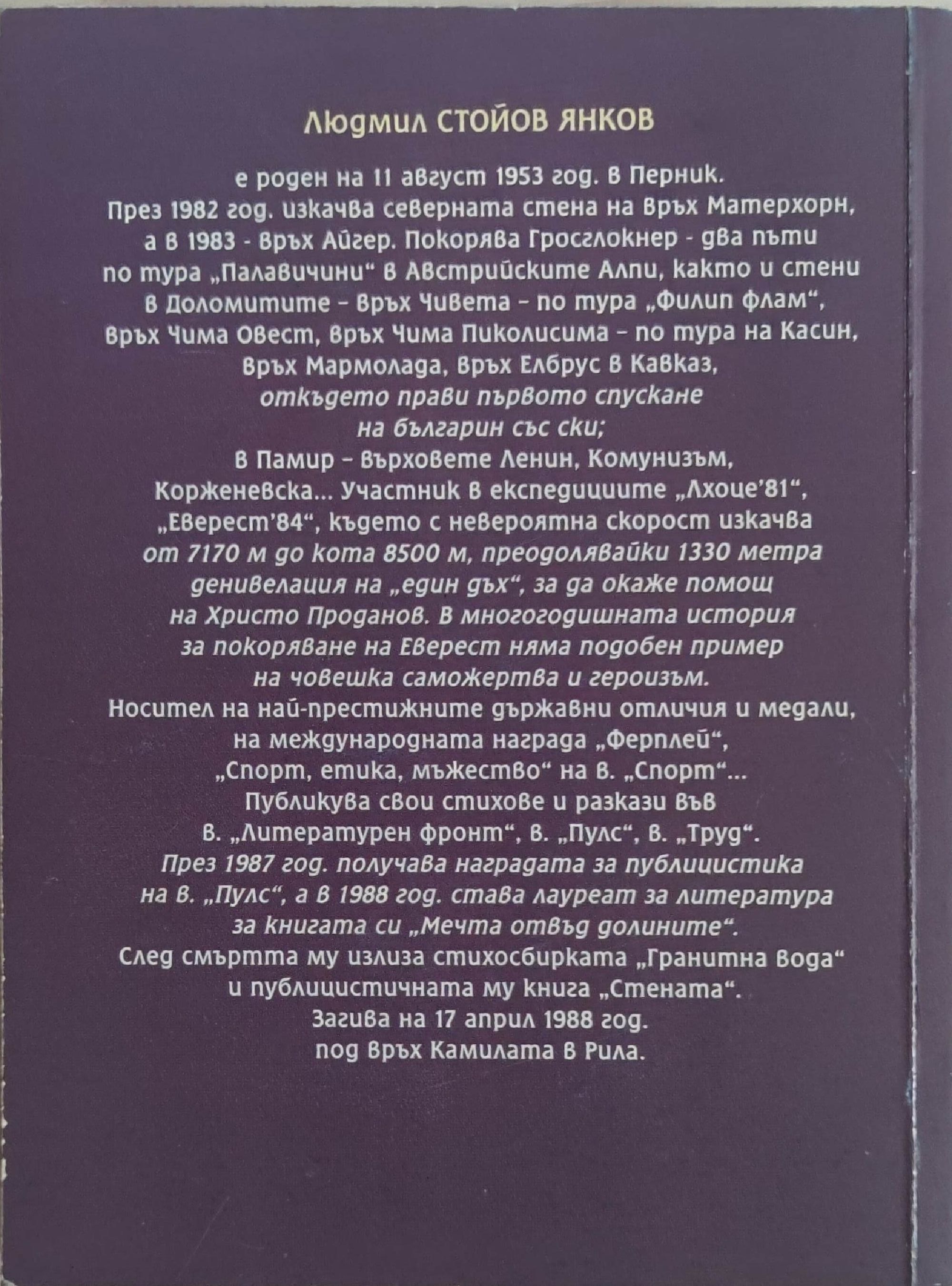 Мечта отвъд долините - проза. Гранитна вода - поезия. Стената - проза