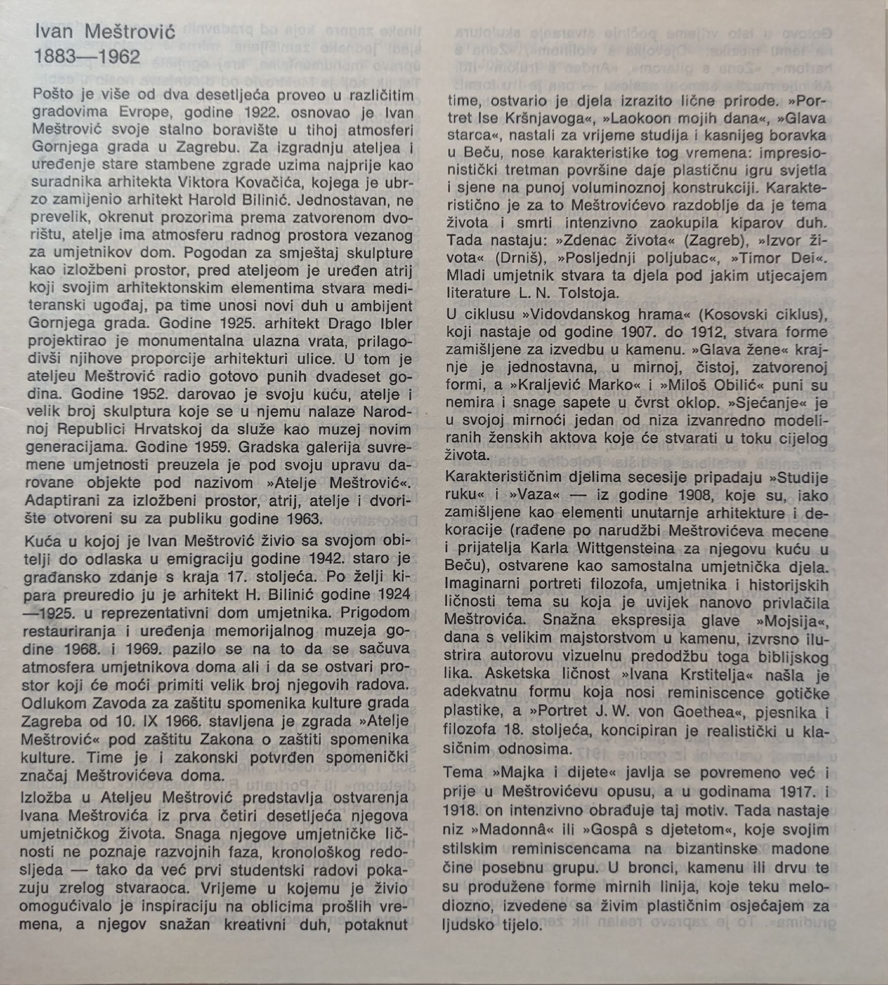 Каталог на Галерия Загреб за изложба с творби на Иван Мещрович.