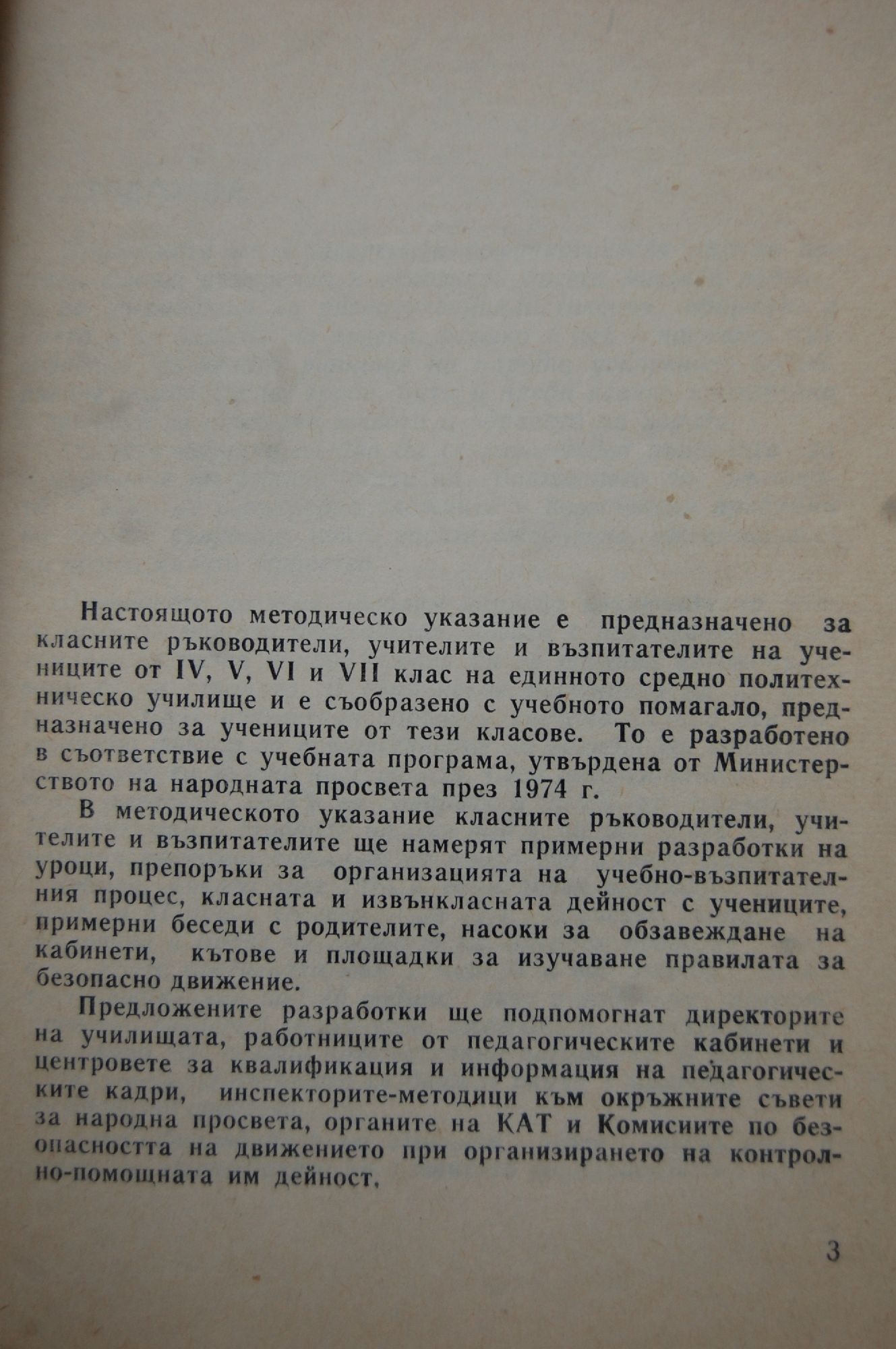 Методическо указание за изучаване на правилата за безопасно движение в IV, V, VI и VII клас на единното средно политехническо училище