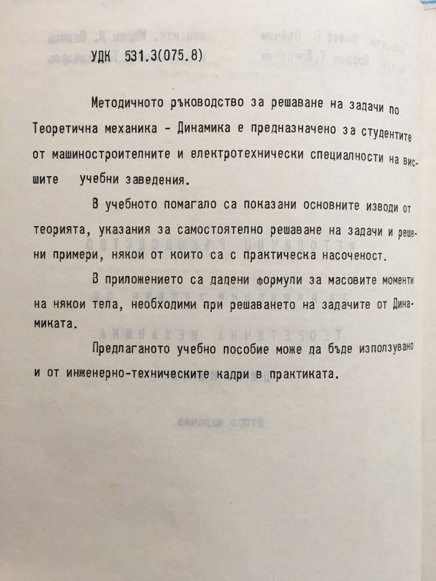 Методично ръководство за решаване на задачи по теоретична механика и динамика