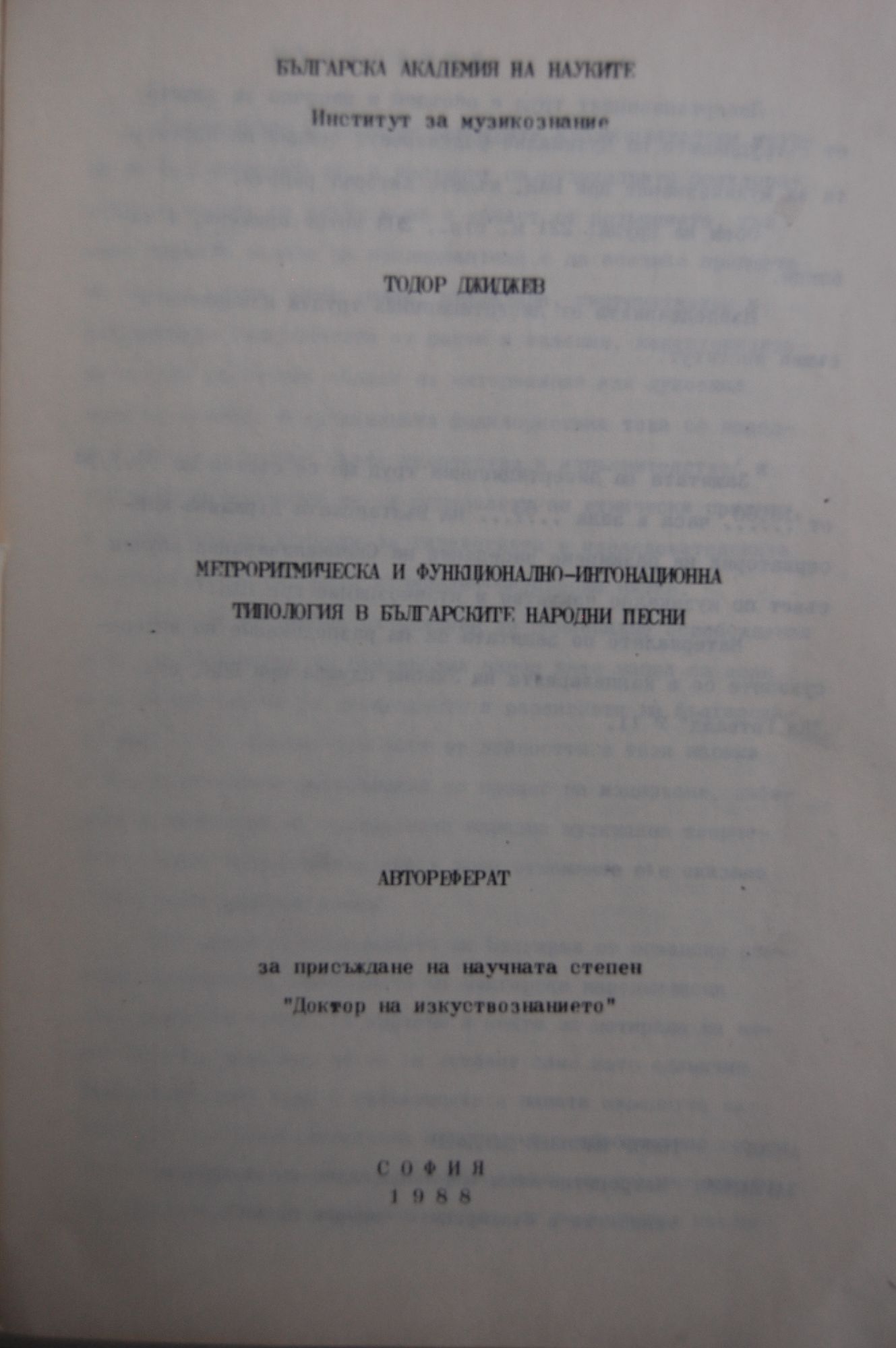 Автореферат за присъждане на научната степен "Доктор на изкуствознанието"
