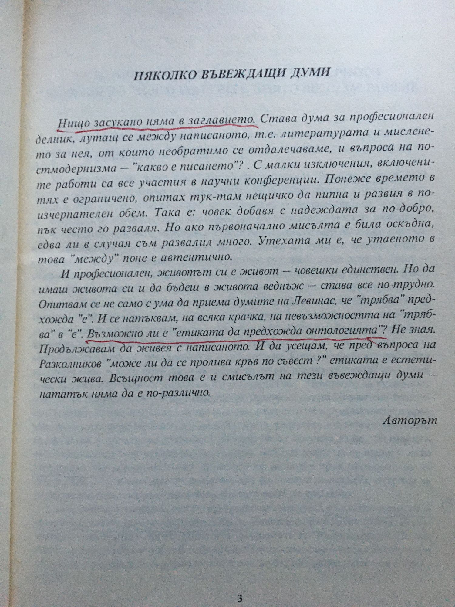 Нищо засукано няма в заглавието. Става дума за професионален делник, лутащ се между написаното, т.е. литературата и мисленето за нея, от които необратимо се отдалечаваме, и въпроса на постмодернизма — "какво е писането"? . С малки изключения, включените работи са все участия в научни конференции. Понеже времето в тях е ограничено, опитах тук-там нещичко да пипна и развия в по-изчерпателен обем. Така е: човек добавя с надеждата за по-добро, пък често го разваля. Но ако първоначално мисълта е била оскъдна, едва ли в случая съм развалил много. Утехата ми е, че утаеното в това "между" поне е автентично. И професионален, животът си е живот — човешки единствен. Но да имаш живота си и да бъдеш в живота веднъж — става все по-трудно. Опитвам се не само сума да приема думите на Левинас, че "трябва" предхожда "е". И се натъквам, на всяка крачка, на невъзможността на "трябва" в "е". Възможно ли е "етиката да предхожда онтологията"? Не зная. Продължавам да живея с написаното. И да усещам, че пред въпроса на Разколников "може ли да се пролива кръв по съвест ?" етиката е естетически жива. Всъщност това е и смисълът на тези въвеждащи думи — нататък няма да е по-различно. Авторът