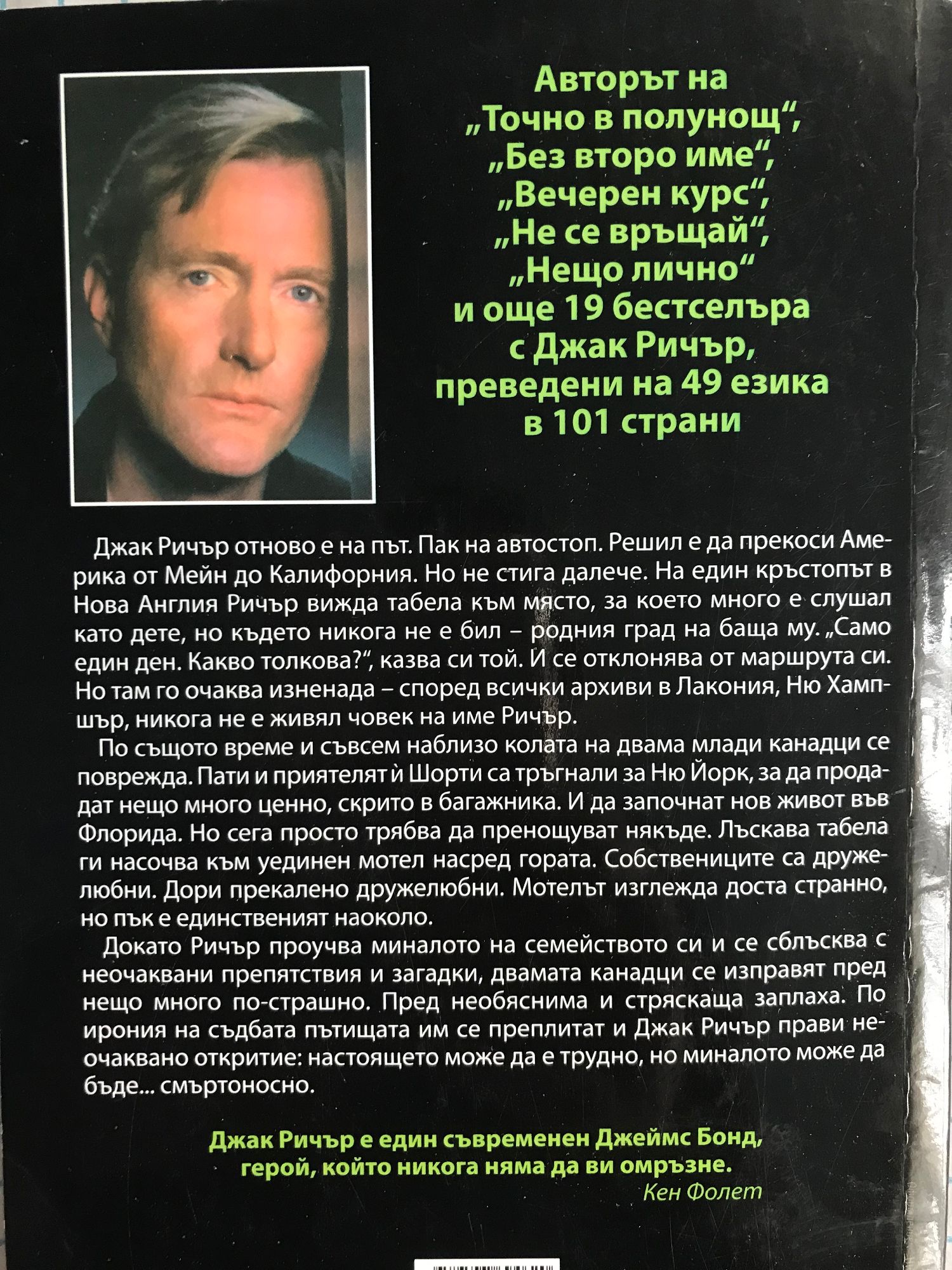 Ричър отново e на път. Пак на автостоп. Решил е да прекоси Америка от Мейн до Калифорния. Но не стига далече. На един кръстопът в Нова Англия той вижда табела към място, където никога не е бил – родния град на баща му. Ето защо Ричър се отклонява от маршрута си. По същото време и на същото място двама млади канадци са принудени да прекъснат пътуването си. Тръгнали са за Ню Йорк да продадат нещо много ценно, но колата им се поврежда и те се озовават в мотел насред пустошта. Мотелът изглежда странно, но те няма къде другаде да се подслонят. На следващата сутрин Ричър разпитва в града за някогашната къща на баща си. Казват му, че тук никога не е живял човек с такова име. Дали баща му изобщо е бил някога в Лакония? Докато той се опитва да разгадае фамилното си минало, канадците са изправени пред неочаквана опасност – те стават пленници на мотела. Разследването на Ричър води до шокиращо откритие: настоящето може да е сурово, но миналото може да бъде наистина смъртоносно. „Джак Ричър е като съвременен Джеймс Бонд, герой, който никога няма да ви омръзне.“ – Кен Фолет
