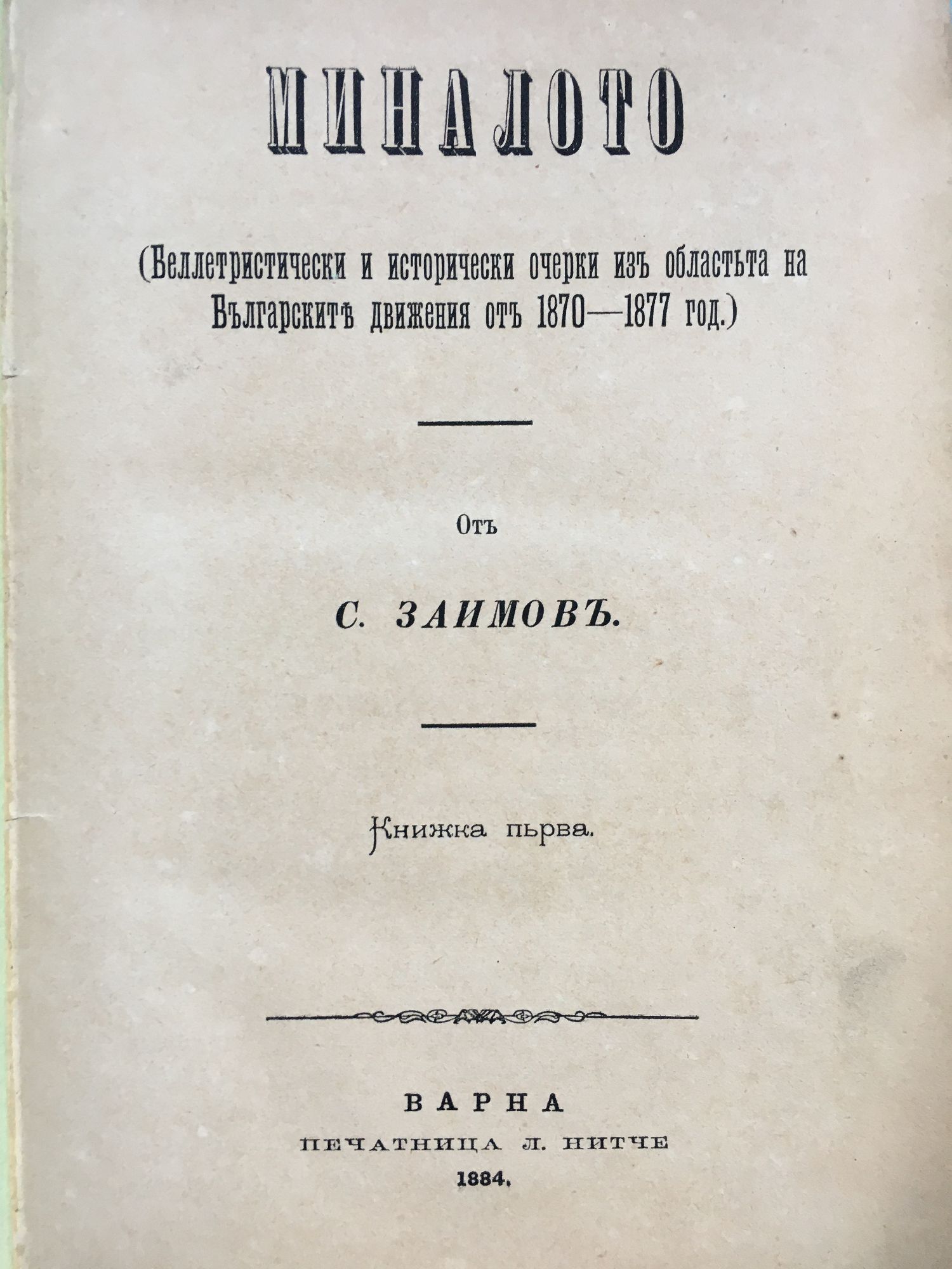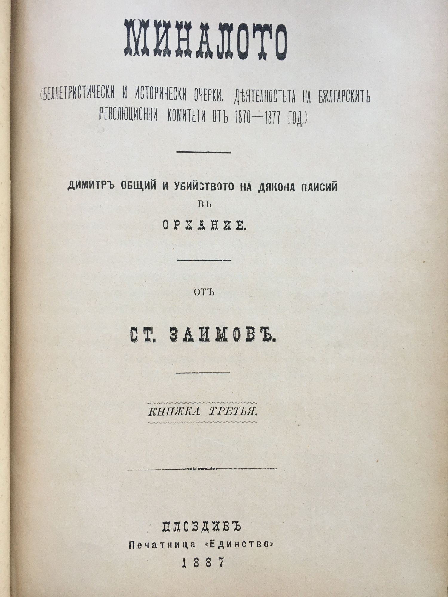 Миналото. (Веллетристически и исторически очерки изъ (из) областьта (областта) на Българските движения отъ (от) 1870 - 1877 год.) - книжка 1. (Беллетристически и исторически очерки. Деятелностьта (деятелността) на българските революционни комитети отъ (от) 1870 - 1877 год.) - книжка 3