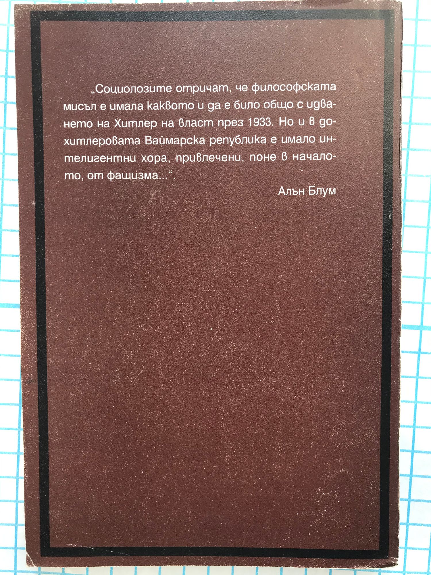 "Социолозите отричат, че философската мисъл е имала каквото и да е било общо с идването на Хитлер на власт през 1933. Но и в дохитлеровата Ваймарска република е имало интелигентни хора, привлечени, поне в началото, от фашизма..."