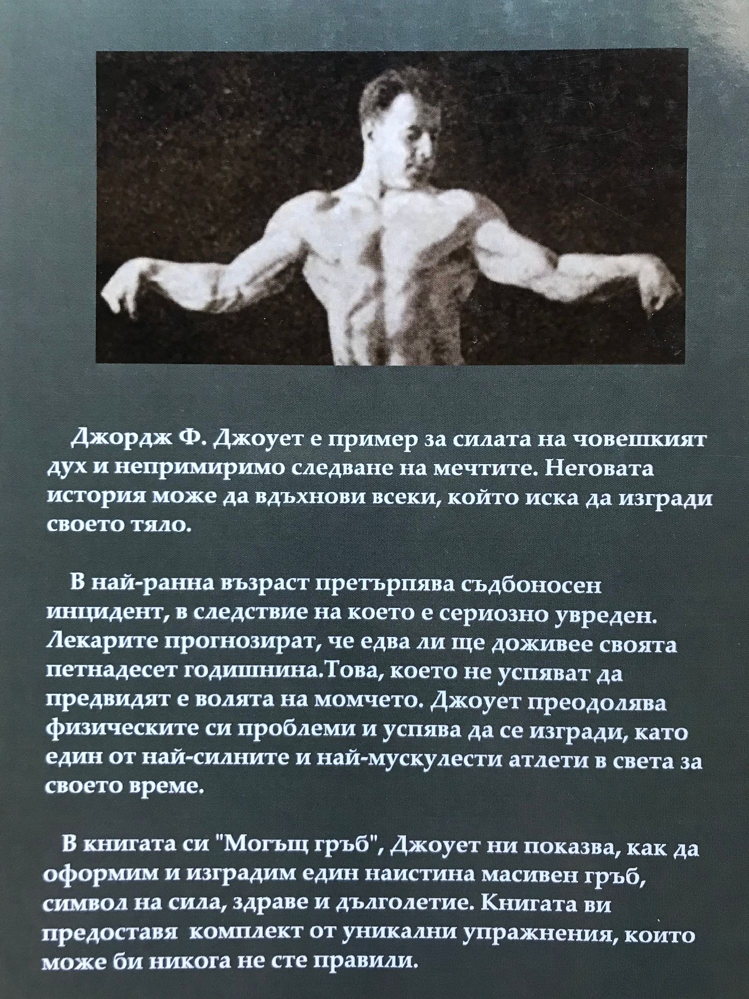 След успеха на "Могъщи ръце", Джоует става всепризнат във световен мащаб, като един от най-добрите бодибилдинг специалисти на своето време. Следват поредица от книги, обхващащи развитието и на другите телесни части, като "Могъщ гръден кош" и "Могъщ гръб". В книгата си Джордж Ф. Джоует е пример за силата на човешкият дух и непримиримо следване на мечтите. Неговата история може да вдъхнови всеки, който иска да изгради своето тяло. В най-ранна възраст претърпява съдбоносен инцидент, в следствие на което е сериозно увреден. Лекарите прогнозират, че два ли ще доживее своята петнадесет годишнина. Това, което не успяват да предвидят е волята на момчета. Джоует преодолява физическите си проблеми и успява да се изгради, като един от най-силните и най-мускулести атлети в света за своето време. В книгата си "Могъщ гръб", Джоует ни показва, как да оформим и изградим един наистина масивен гръб, символ на сила, здраве и дълголетие. Книгата ви представя комплект от уникални упражнения, които може би никога не сте правили.