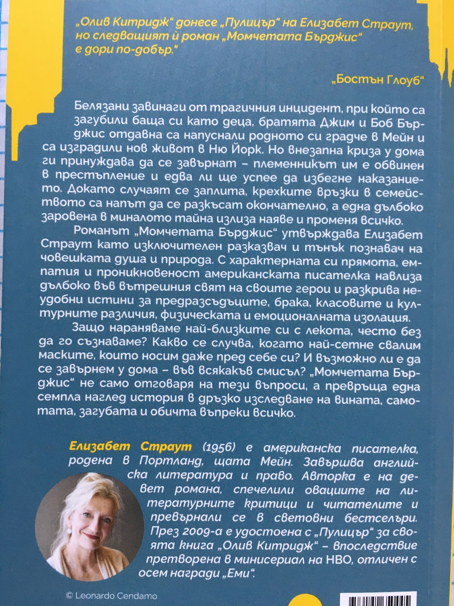 Белязани завинаги от трагичния инцидент, при който са загубили баща си като деца, братята Джим и Боб Бърджис отдавна са напуснали родното си градче в Мейн и са изградили нов живот в Ню Йорк. Но внезапна криза у дома ги принуждава да се завърнат – племенникът им е обвинен в престъпление и едва ли ще успее да избегне наказанието. Докато случаят се заплита, крехките връзки в семейството са на път да се разкъсат окончателно, а една дълбоко заровена в миналото тайна излиза наяве и променя всичко. Романът „Момчетата Бърджис“ утвърждава Елизабет Страут като изключителен разказвач и тънък познавач на човешката душа и природа. С характерната си прямота, емпатия и проникновеност американската писателка навлиза дълбоко във вътрешния свят на своите герои и разкрива неудобни истини за предразсъдъците, брака, класовите и културните различия, физическата и емоционалната изолация. Защо нараняваме най-близките си с лекота, често без да го съзнаваме? Какво се случва, когато най-сетне свалим маските, които носим даже пред себе си? И възможно ли е да се завърнем у дома – във всякакъв смисъл? „Момчетата Бърджис“ не само отговаря на тези въпроси, а превръща една семпла наглед история в дръзко изследване на вината, самотата, загубата и обичта въпреки всичко. Елизабет Страут (1956) е американска писателка, родена в Портланд, щата Мейн. Завършва английска литература и право. Авторка е на девет романа, спечелили овациите на литературните критици и читателите и превърнали се в световни бестселъри. През 2009-а е удостоена с „Пулицър“ за своята книга „Олив Китридж“ – впоследствие претворена в минисериал на HBO, отличен с осем награди „Еми“.