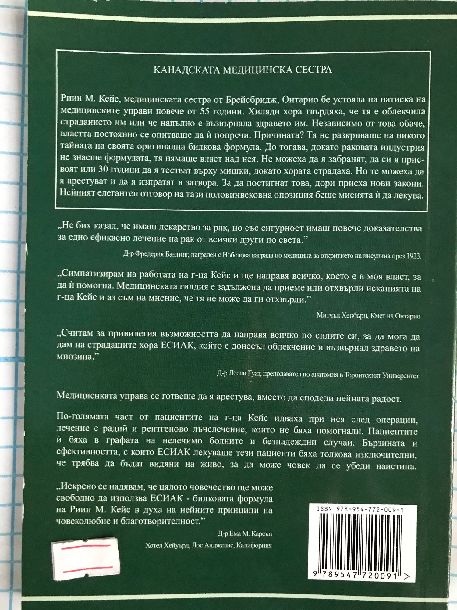 Животът на Риин М. Кейс, медицинаската сестра от Канада, която лекуваше рак и историята на Есиак.