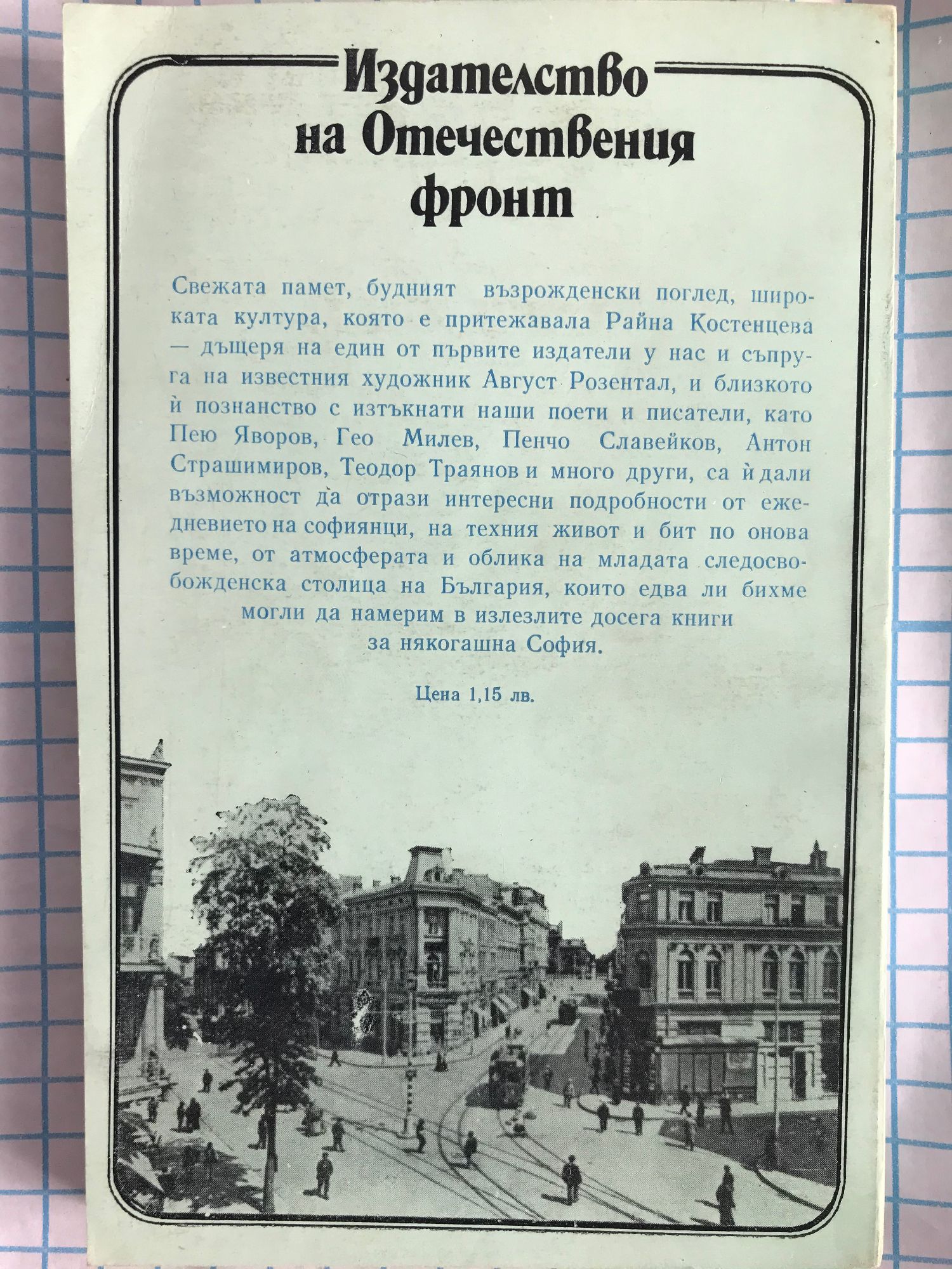 В своите спомени авторката не цитира дати, не прави сухи исторически разбори, а представя увлекателно и завладяващо всекидневния живот на столичани в края на ХІХ и началото на ХХ век. Пред очите на читателя възкръсват улици, бани, църкви и джамии, публични домове, пазари, улични търговци, кръчми, театри... Сладкодумно, черпейки от първоизвора като очевидец на случващото се в новоизбраната столица, Райна Костенцева пише книга, която и днес изпълнява ролята на своеобразен пътеводител в душевността и манталитета на първите столичани - премного ориенталци, не толкова европейци. Тя разказва също и за своя род, за предсмъртната песен на Левски, за героизма и саможертвата на първостроителите на българската култура и държава, за шопските сватби, за рекета на общинарите...
