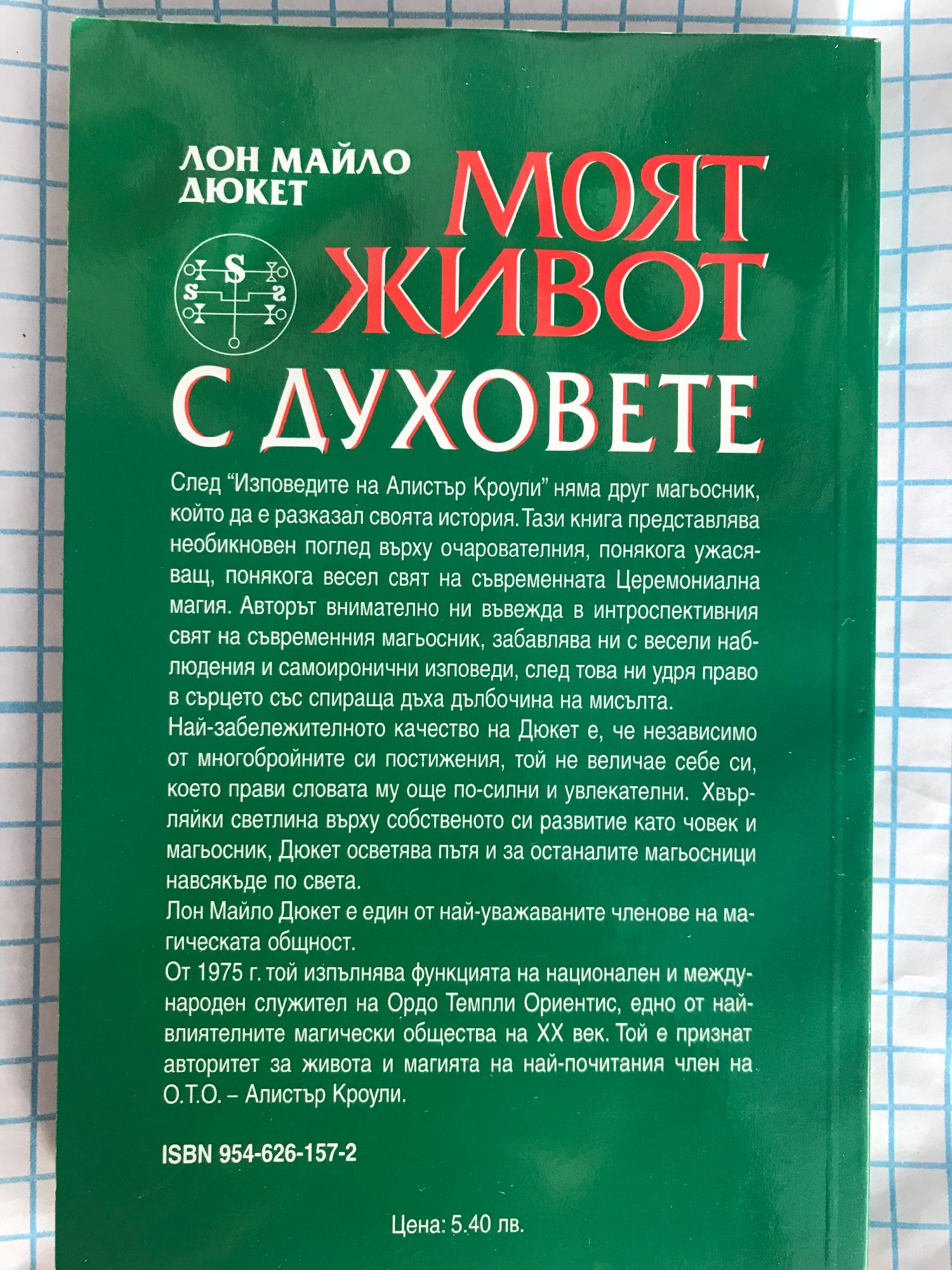 След "Изповедите на Алистър Кроули” няма друг магьосник, който да е разказал своята история.Тази книга представлява необикновен поглед върху очарователния, понякога ужасяващ, понякога весел свят на съвременната Церемониална магия. Авторът внимателно ни въвежда в интроспективния свят на съвременния магьосник, забавлява ни с весели наблюдения и самоиронични изповеди, след това ни удря право в сърцето със спираща дъха дълбочина на мисълта. Най-забележителното качество на Дюкет е, че независимо от многобройните си постижения, той не величае себе си, което прави словата му още по-силни и увлекателни. Хвърляйки светлина върху собственото си развитие като човек и магьосник, Дюкет осветява пътя и за останалите магьосници навсякъде по света. Лон Майло Дюкет е един от най-уважаваните членове на магическата общност. От 1975 г.той изпълнява функцията на национален и международен служител на Ордо Темпли Ориентис, едно от най-влиятелните магически общества на XX век. Той е признат авторитет за живота и магията на най-почитания член на О.Т.О. - Алистър Кроули.