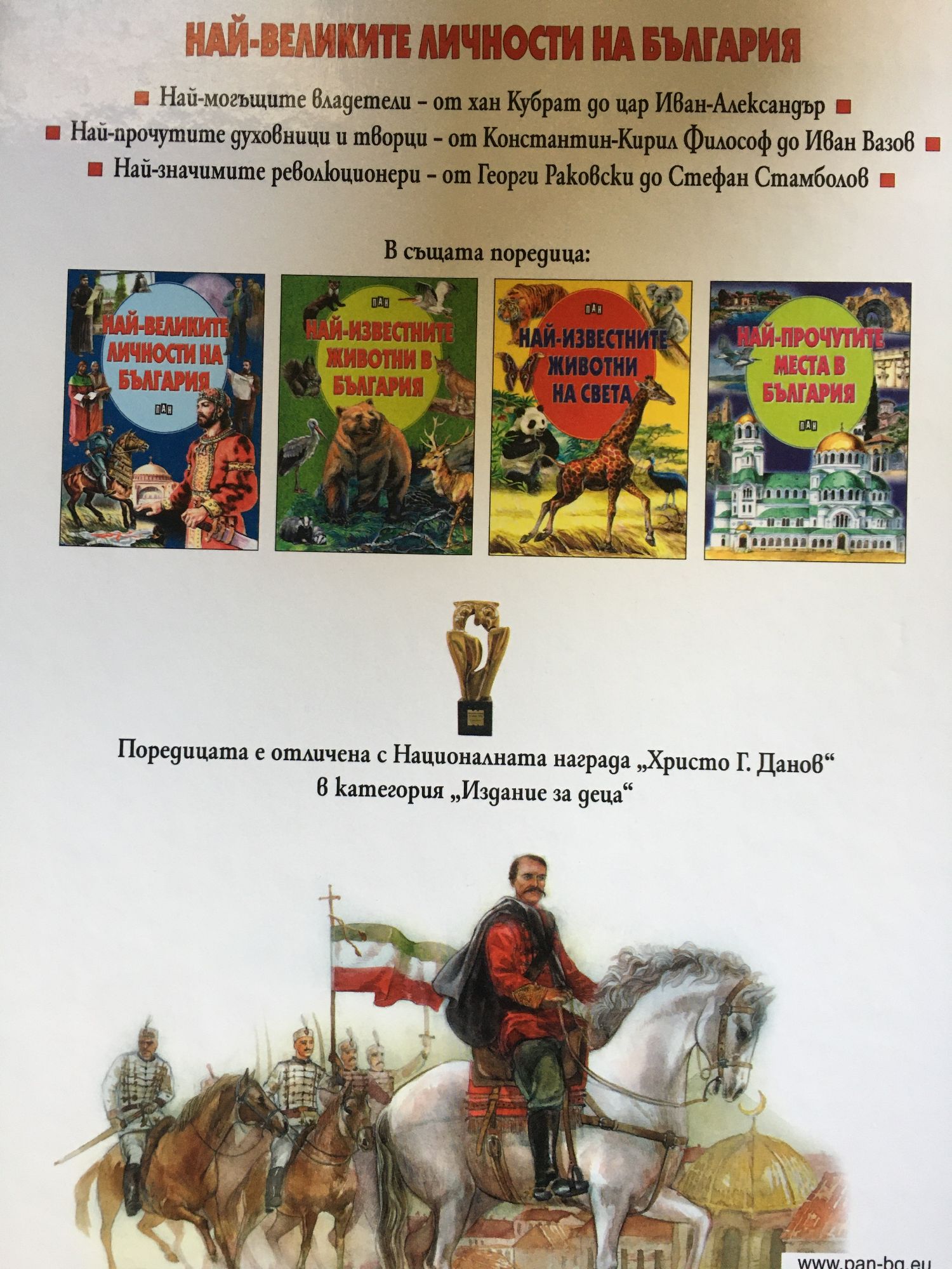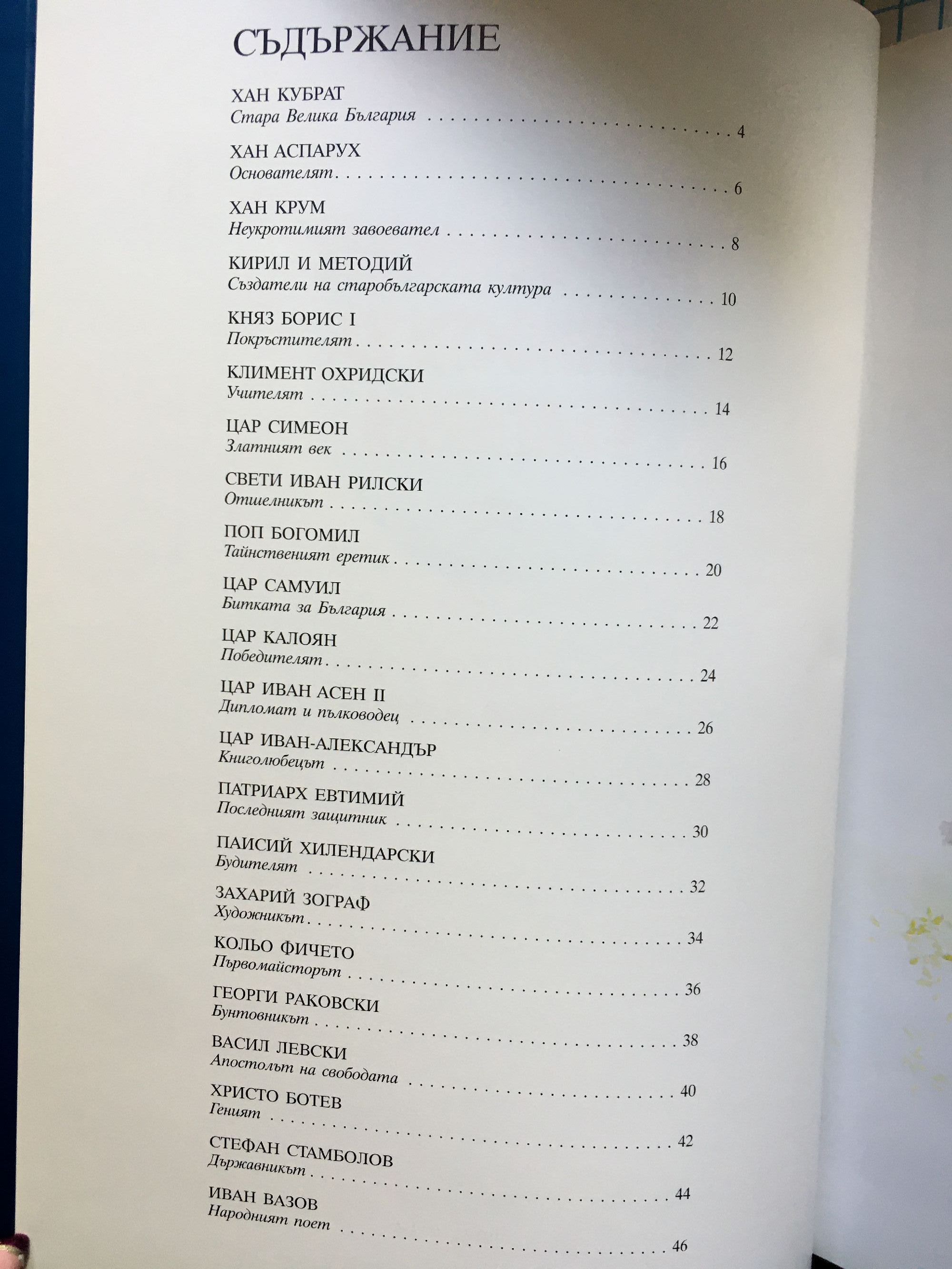 Най-могъщите владетели - от хан Кубрат до цар Иван-Александър. Най-прочутите духовници и творци - от Константин-Кирил Философ до Иван Вазов. Най-значимите революционери - от Георги Раковски до Стефан Стамболов.