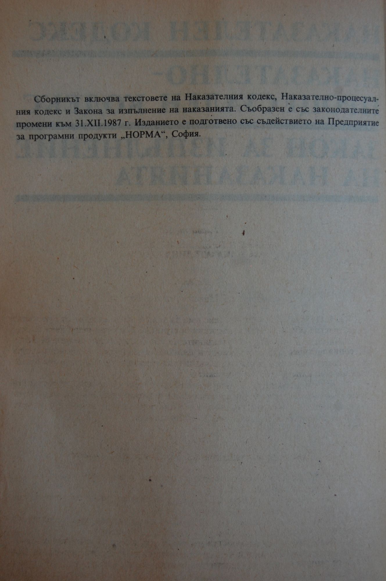 Наказателен кодекс. Наказателно-процесуален кодекс. Закон за изпълнение на наказанията