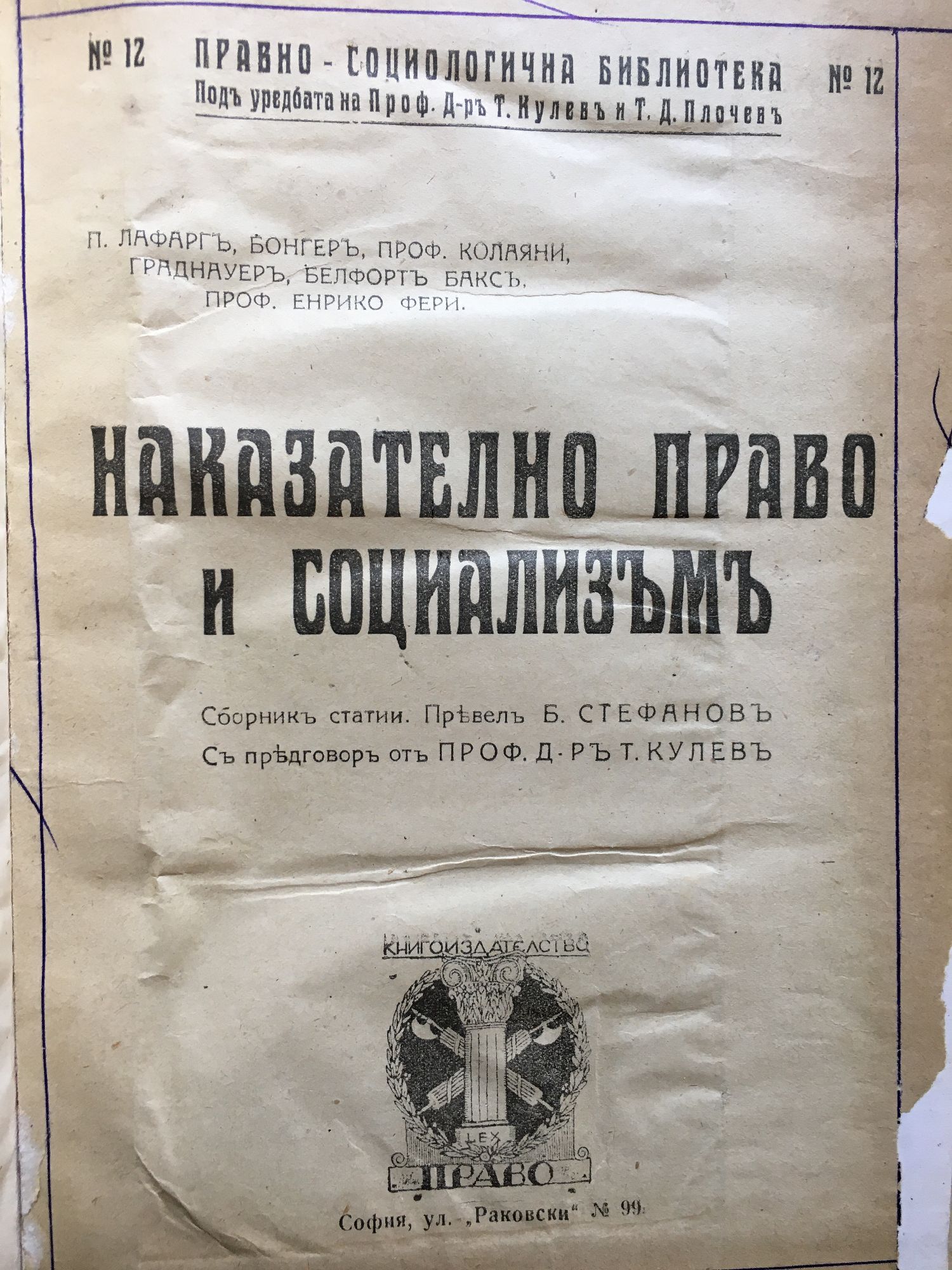 от Пол Лафарг, Бонгер, проф. Калояни, Граднауер, Белфорт Бакс, проф. Енрико Фери, Николай Ил. Икономов
