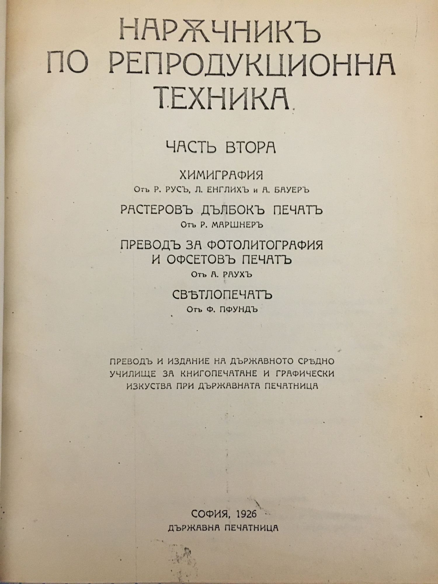 Химиграфия. Растеровъ дълбокъ печатъ. Преводъ за фотолитография и офсетовъ печатъ. Светлопечатъ