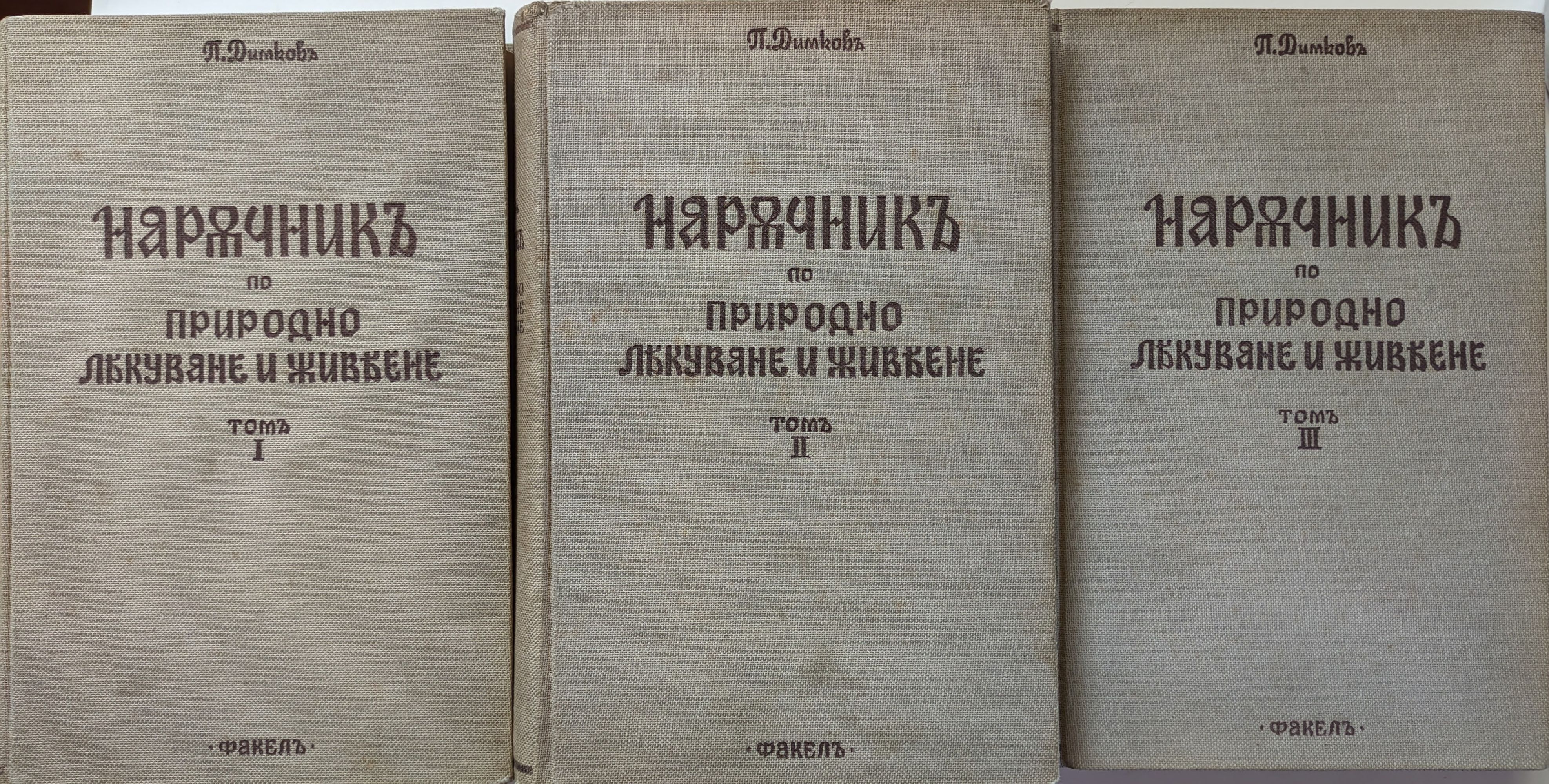 455,05 € / 890,00 лв.Много добро състояние на книжното тяло. Трите тома са в издателски твърди подвързии, малко използвани. Слабо захабени ъгли на кориците отвън, леко замърсяване и минимални външни следи от влага. Пожълтели листове, в почти отлично състояние. На том 2 при десния горен ръб на последните 150 страници има слаба следа или бледо петно от намокряне, забележимо е също леко накъдряне пак там. С минимални следи от употреба по потезката. Голямата таблица с приложенията е закъсана в долния край на една от малките илюстрации. На първа празна страница има подпис и дата от предишен притежател.