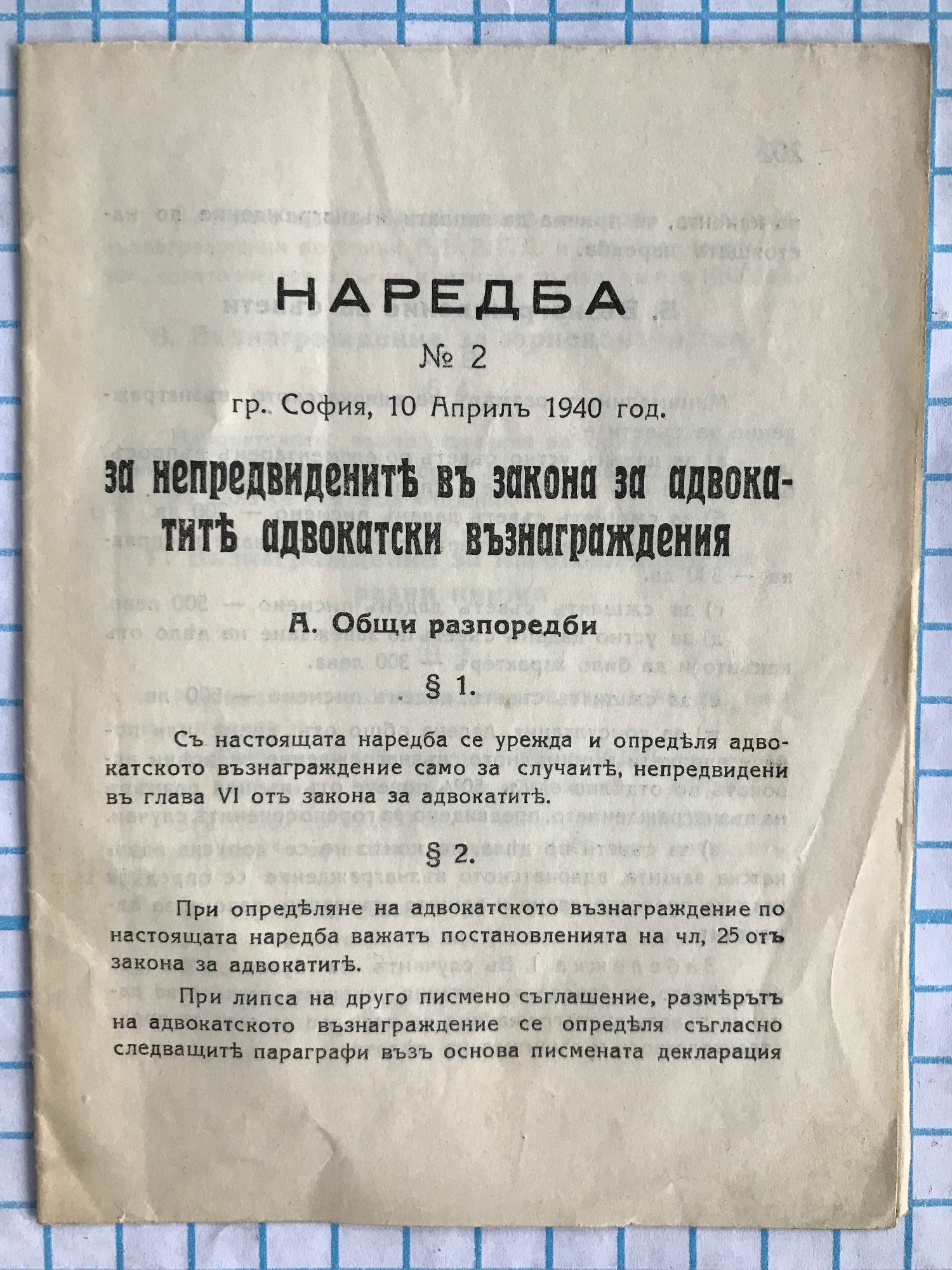 Наредба №2. За непредвидените в закона за адвокатите адвокатски възнаграждения
