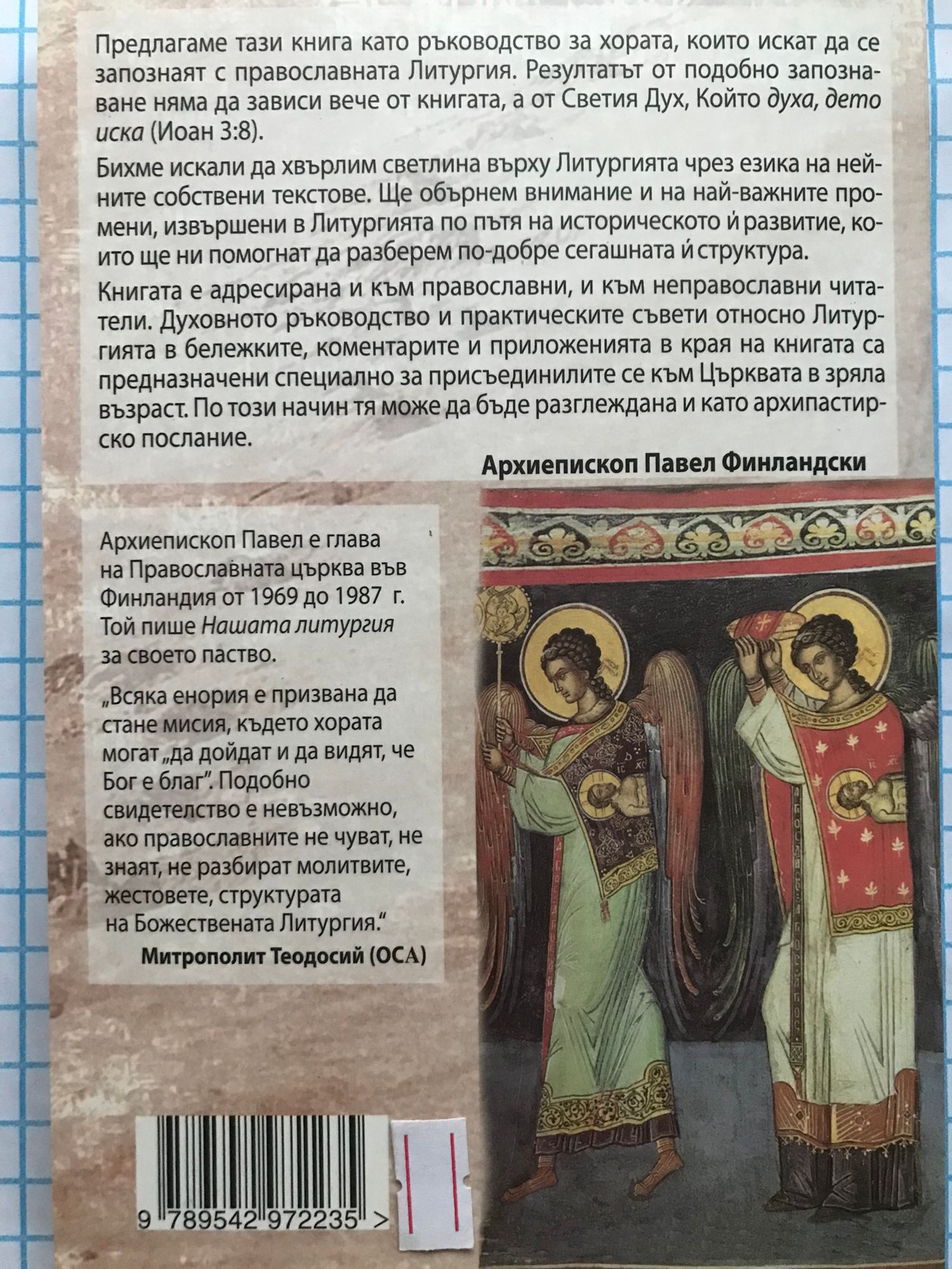 Предлагаме тази книга като ръководство за хората, които искат да се запознаят с православната Литургия. Резултатът от подобно запознаване няма да зависи вече от книгата, а от Светия Дух, Който "духа, дето иска" (Йоан 3: 8). Бихме искали да хвърлим светлина върху Литургията чрез езика на нейните собствени текстове. Ще обърнем внимание и на най-важните промени, извършени в Литургията през историческото й развитие, което ще ни помогне да разберем по-добре сегашната й структура. Книгата е адресирана и към православни, и към неправославни читатели. Духовното ръководство и практическите съвети за Литургията в бележките, коментарите и приложенията са предназначени специално за хора, които са се присъединили към Църквата в зряла възраст. По този начин книгата може да бъде разглеждана и като архипастирско послание. Архиепископ Павел Финландски