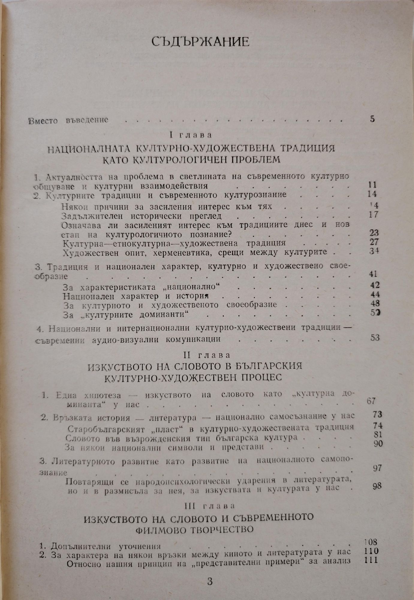 Авторът изследва съвременното наше киноизкуство от позициите на културологията. Разглежда българския игрален филм като своеобразен модел на съвременната ни култура. Потърсени са онези процеси в нашето Възраждане, които по един или друг начин формират лицето на националната ни художествена култура и днес.