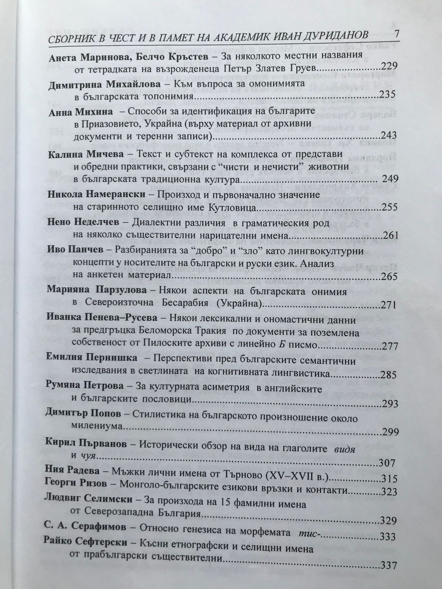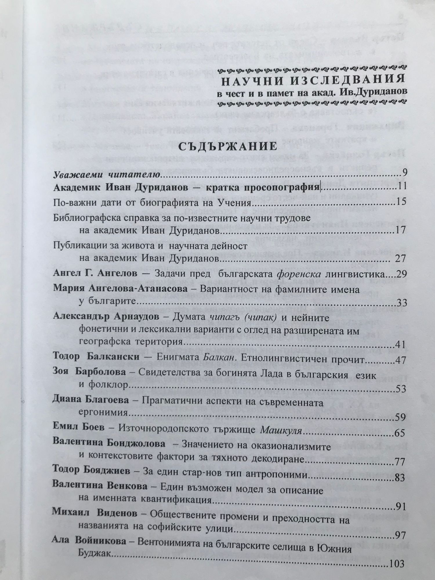 Сборник с материали от Научната конференция в чест на неговата 85-годишнина на тема "Ономастика. Лексикология. Етимология. Етнолингвистика. Социолингвистика". София, 9 - 10 май 2005 г.