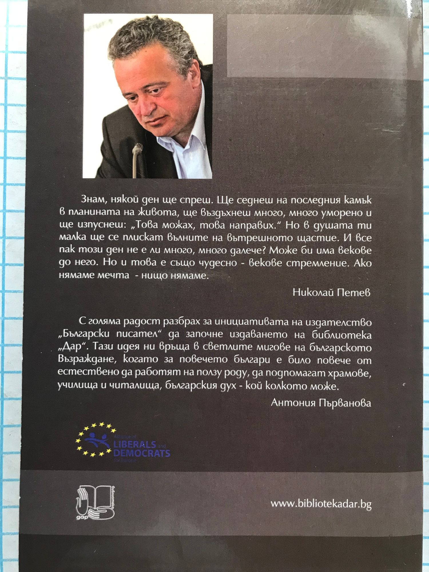 Знам, някой ден ще спреш. Ще седнеш на последния камък в планината на живота, ще въздъхнеш много, много уморено и ще изпуснеш: "Това можах, това направих." Но в душата ти малка ще се плискат вълните на вътрешното щастие. И все пак този ден не е ли много, много далече? Може би има векове до него. Но и това е също чудесно - векове стремление. Ако нямаме мечта - нищи нямаме. Николай Петев