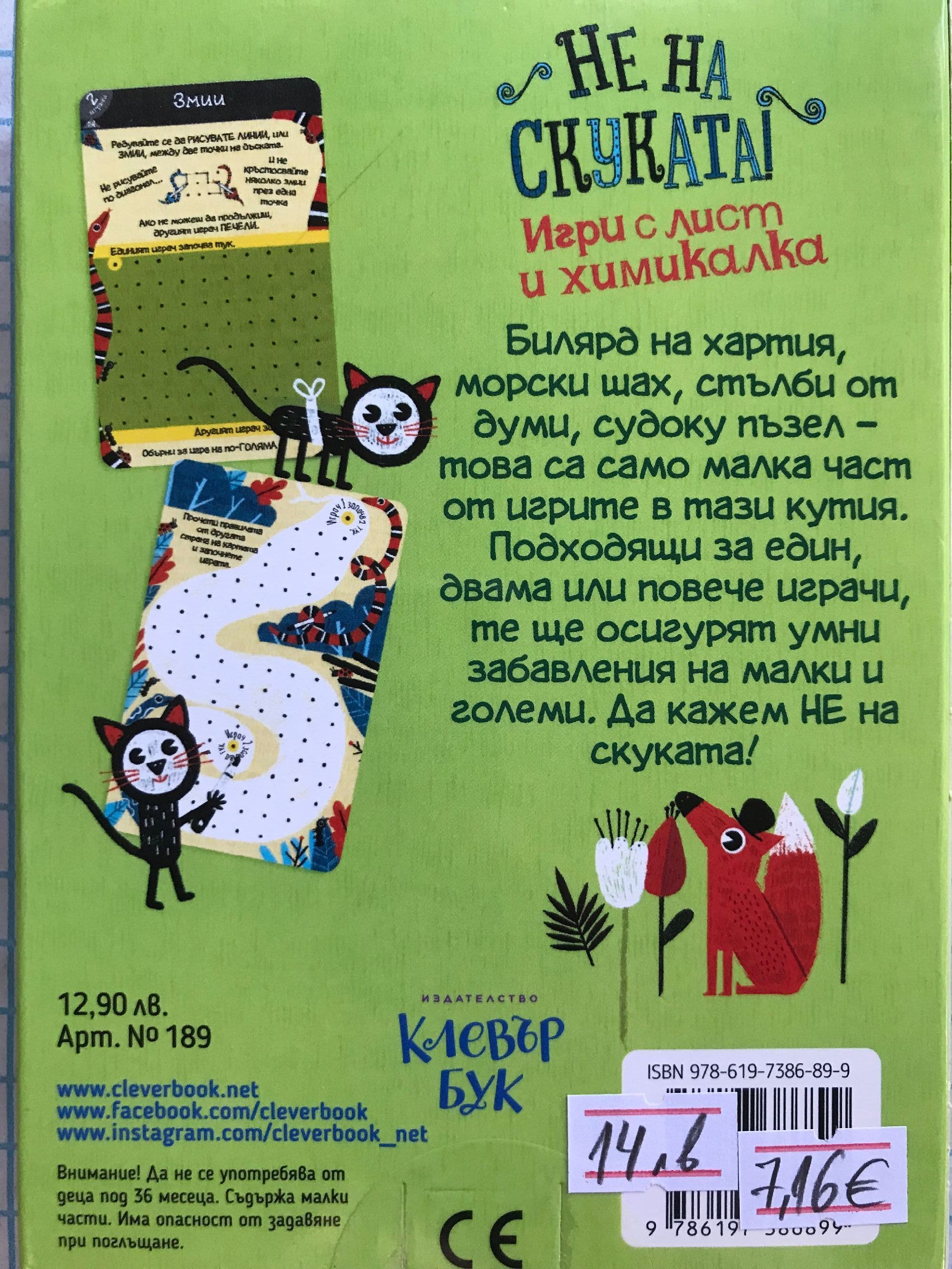 Билярд на хартия, морски шах, стълби от думи, судоку пъзел - това са само част от игрите в тази кутия. Подходящи за един, двама или повече играчи, те ще осигурят умни забавления на малки и големи. Да кажем НЕ на скуката!