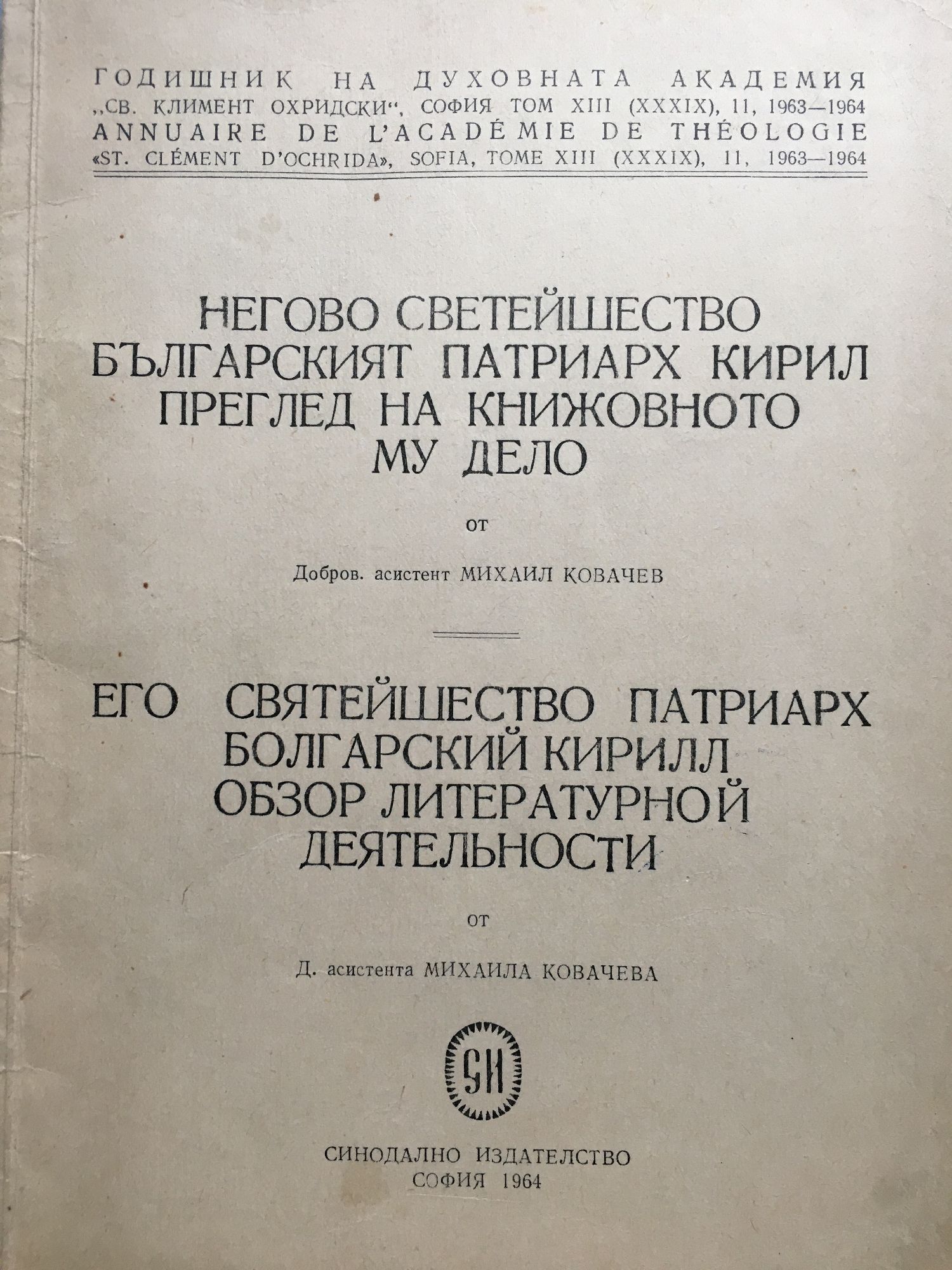 Годишник на духовната академия - том XIII, год. 1963-64