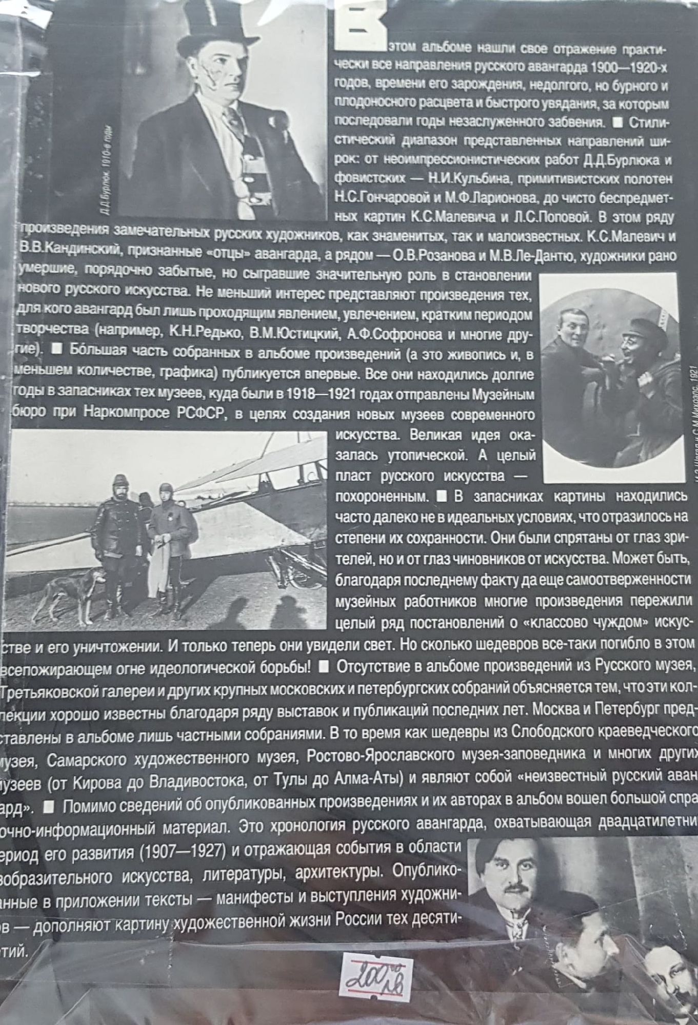 Описание В альбоме опубликовано более 300 неизвестных и малоизвестных произведений художников русского авангарда 1910 - 1920-х годов. Помимо каталожных сведений на эти произведения, в альбом включены биографии художников, а также большой справочно-биографический материал.