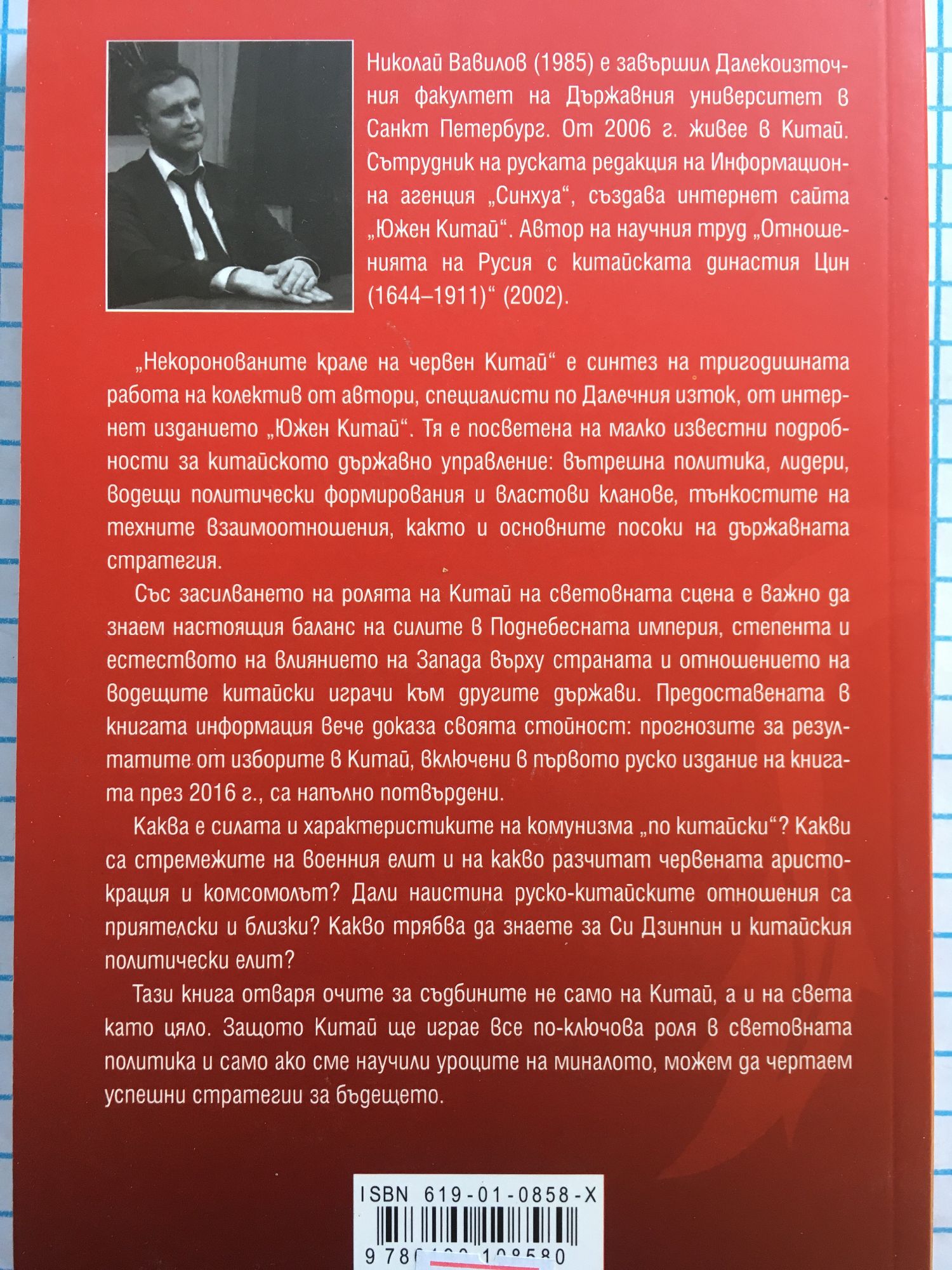 "Некоронованите крале на червен Китай" е синтез на тригодишната работа на колектив от автори, специалисти по Далечния изток, от интернет изданието "Южен Китай". Тя е посветена на малко известни подробности за китайското държавно управление: вътрешна политика, лидери, водещи политически формирования и властови кланове, тънкостите на техните взаимоотношения, както и основните посоки на държавната стратегия. Със засилването на ролята на Китай на световната сцена е важно да знаем настоящия баланс на силите в Поднебесната империя, степента и естеството на влиянието на Запада върху страната и отношението на водещите китайски играчи към другите държави. Предоставената в книгата информация вече доказа своята стойност: прогнозите за резултатите от изборите в Китай, включени в първото руско издание на книгата през 2016 г., са напълно потвърдени. Каква е силата и характеристиките на комунизма "по китайски"? Какви са стремежите на военния елит и на какво разчитат червената аристокрация и комсомолът? Дали наистина руско-китайските отношения са приятелски и близки? Какво трябва да знаете за Си Дзинпин и китайския политически елит? Тази книга отваря очите за съдбините не само на Китай, а и на света като цяло. Защото Китай ще играе все по-ключова роля в световната политика и само ако сме научили уроците на миналото, можем да чертаем успешни стратегии за бъдещето.