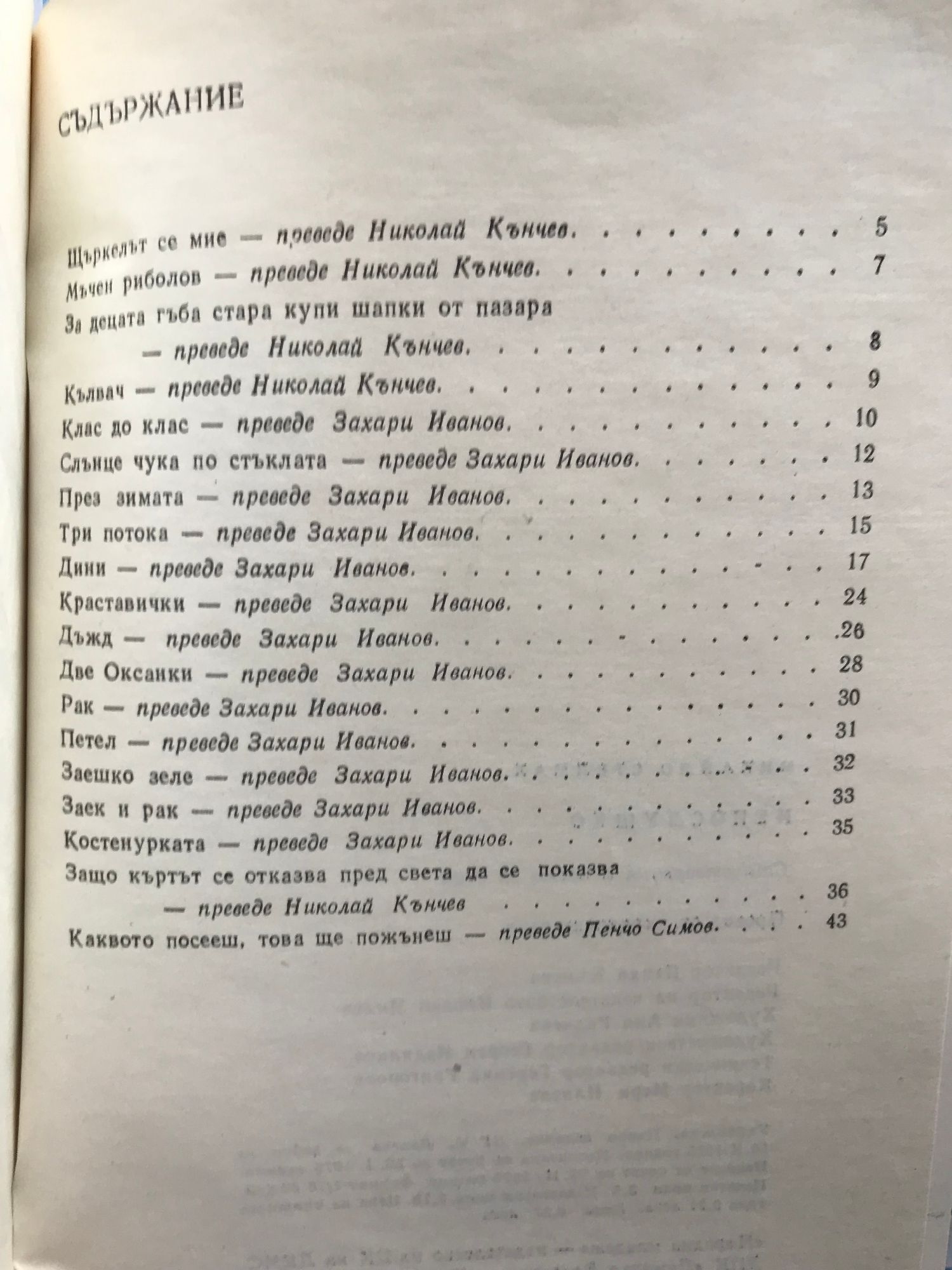 - преводач: Николай Кънчев, Захари Иванов, Пенчо Симов