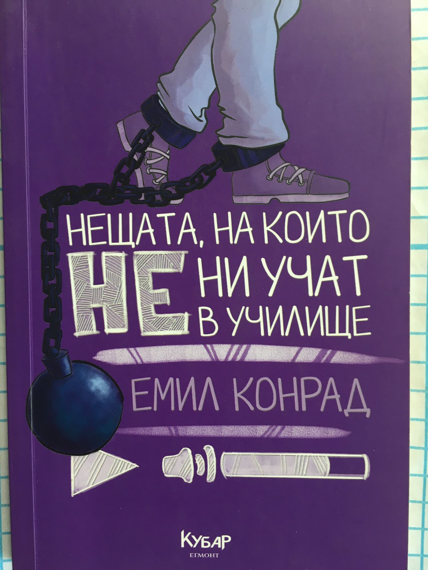 На страниците на „Нещата, на които не ни учат в училище“ са събрани дванадесет смешно-сериозни, комично-трагични истории. Лъжата, страхът, щастието и очакванията – това са само част от темите в книгата. В дебютното си заглавие влогърът Емил Конрад споделя лични размишления и преживявания в типичния си шеговит и прям стил. Броят на историите кореспондира на дванадесетте класа в училище и всяка от тях засяга тема, близка не само до тийнейджърите. Тринадесетата глава принадлежи на читателите – всеки сам може да допише книгата и да изпрати своя текст. Но не само това прави книгата уникална. Четири от илюстрациите в нея съдържат QR кодове, които при зареждане отвеждат до четири клипа, създадени специално за книгата.