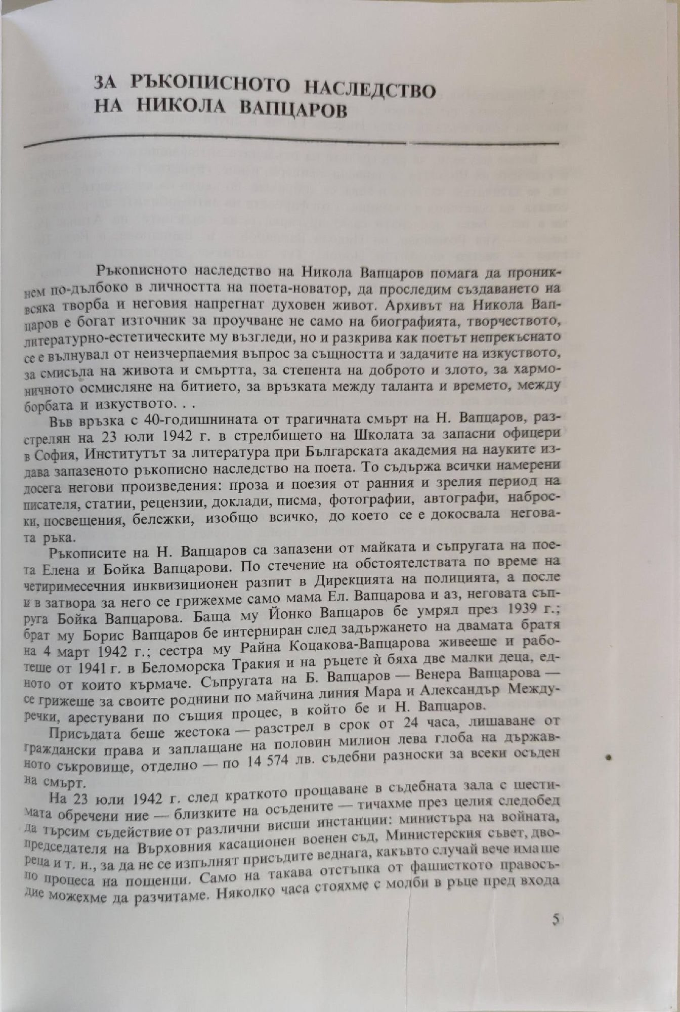 Никола Вапцаров - Ръкописно наследство