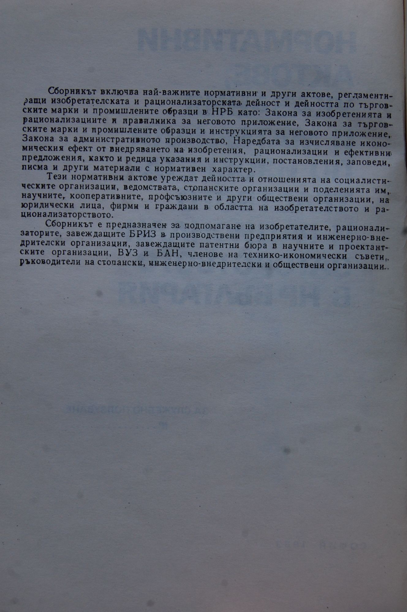 Нормативни актове, указания и материали по изобретателството и рационализаторството в НР България