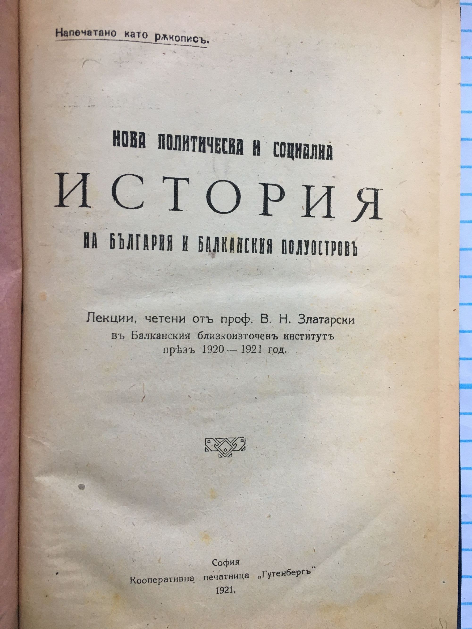 Лекции, четени отъ проф. В. Н. Златарски въ Балканския близкоизточенъ институтъ презъ 1920 - 1921 год.