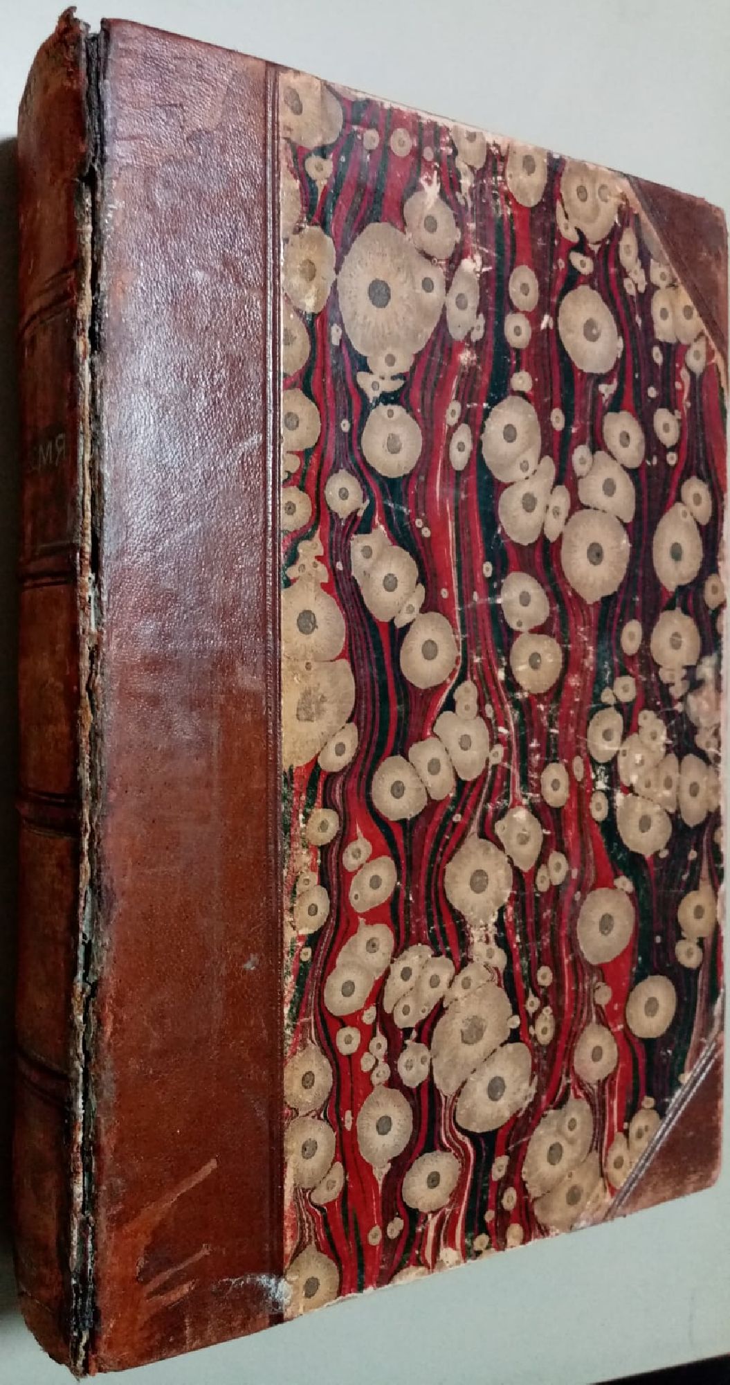 158,50 € / 310,00 лв.Добро състояние на книжното тяло. Без мека корица; щамповано кожено гръбче с увреден преден ръб, парче липсва от долния край (вж. снимки). Минимални следи от влага по някои страници, леки по няколко. Малко закъсване на лист от "съдържание", също на хартията в сгъвките при форзаците.