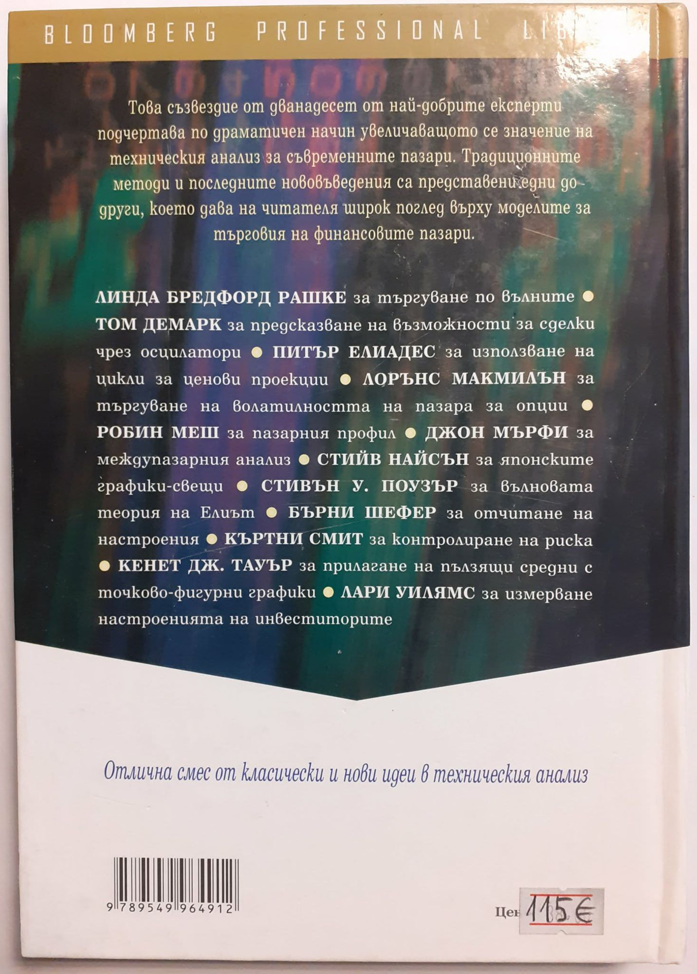 В книгата "Нови идеи в техническия анализ" дванадесет от най-добрите експерти разкриват методите и стратегиите си за успешно участие в търговията на финансовите пазари, като подчертават по драматичен начин увеличаващото се значение на техническия анализ. Традиционните методи и последните нововъведения са представени едни до други, което дава на читателя широк поглед върху моделите за търговия. Книгата предлага на участниците на пазара богатство от инструменти за подобряване на инвестиционното им представяне, като всеки от тях се разглежда от уникална и проверена във времето перспектива. В това безценно ръководство читателят високо ще оцени директното, разбираемо и нагледно представяне на прогнозирането и динамиката на пазара. Обогатени с повече от 170 диаграми и илюстрации, Новите идеи ще станат неизменен спътник на всеки "играч" на финансовите пазари, който търси да получи конкурентно предимство.