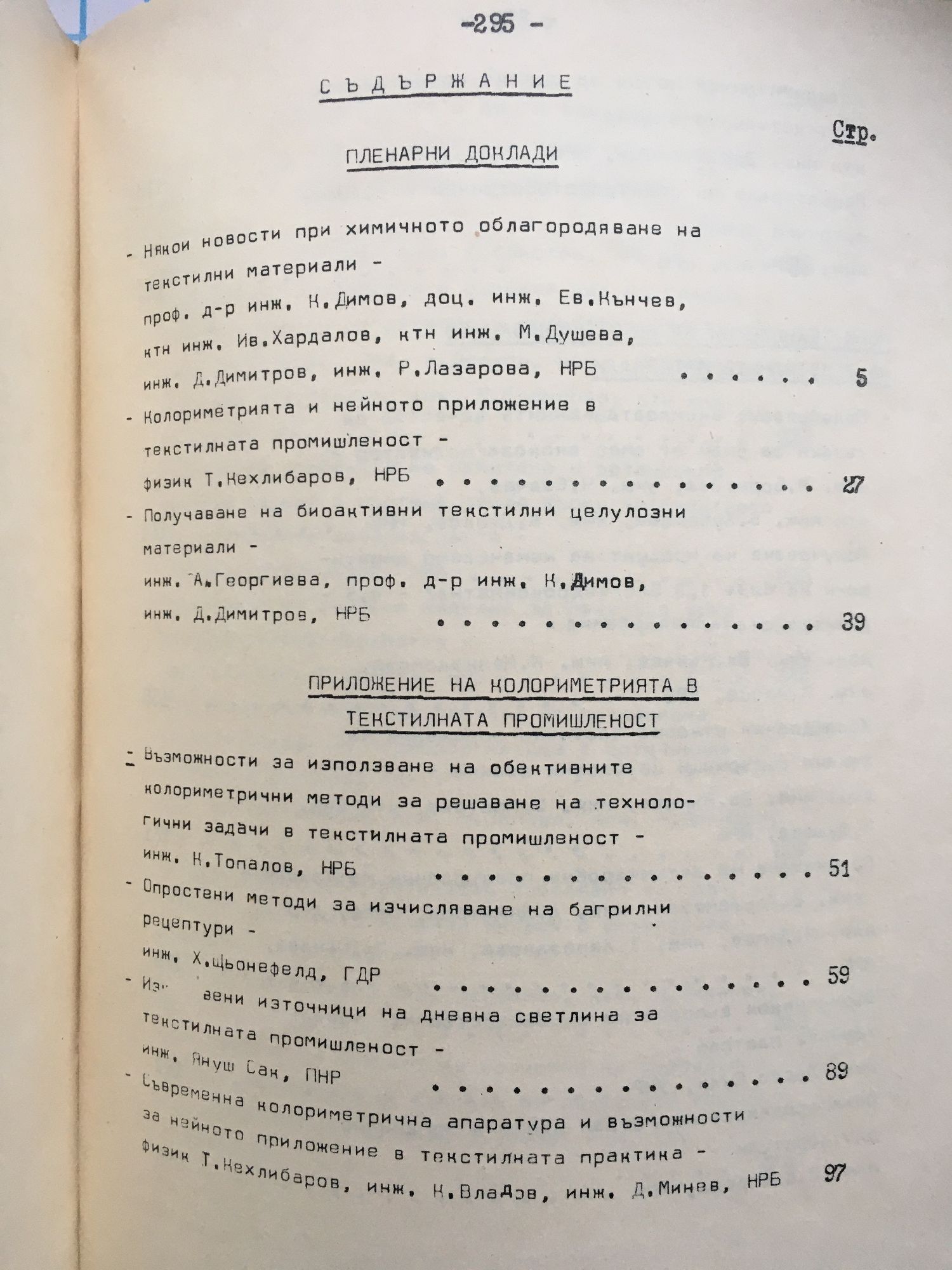 Нови насоки в облагородяването на тъкани, плетива и нетъкани текстилни материали и използуването на колориметрията в текстилната промишленост